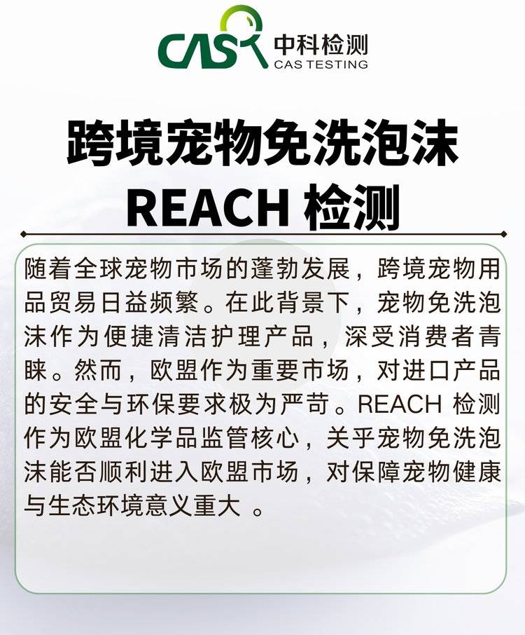 跨境宠物免洗泡沫 REACH 检测 CNAS、CMA 双认证 报告欧盟认可