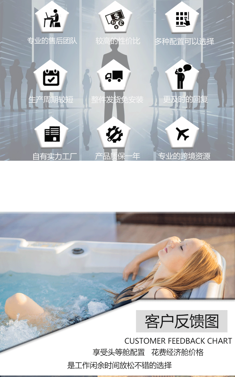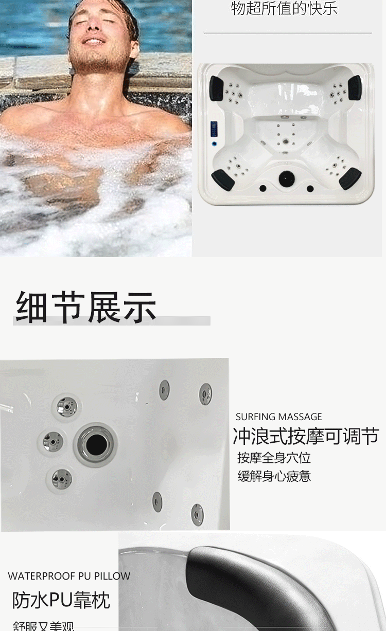 户外多功能冲浪式按摩浴缸自家庭院多人智能恒温加热水疗温泉泳池