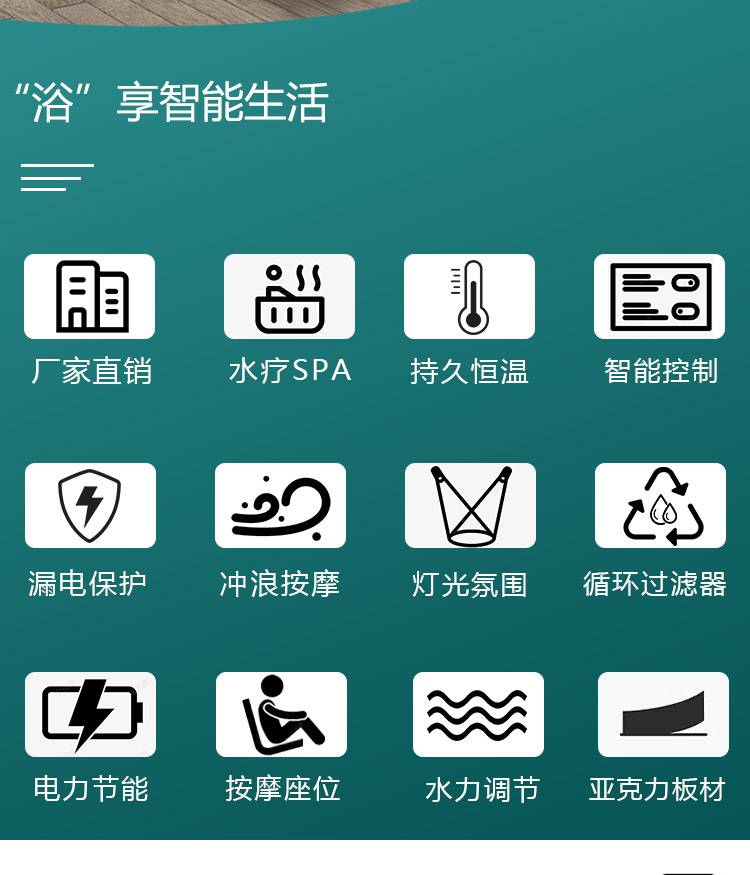 亚克力家用泡澡池冲浪按摩浴缸自带恒温过滤加速新陈代谢