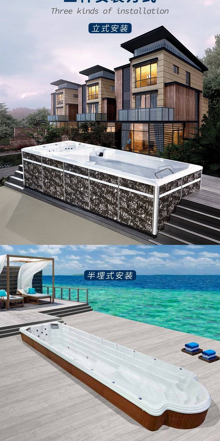 温泉度假泡池室内恒温冲浪 户外按摩浴缸 成品一体化游泳池厂家
