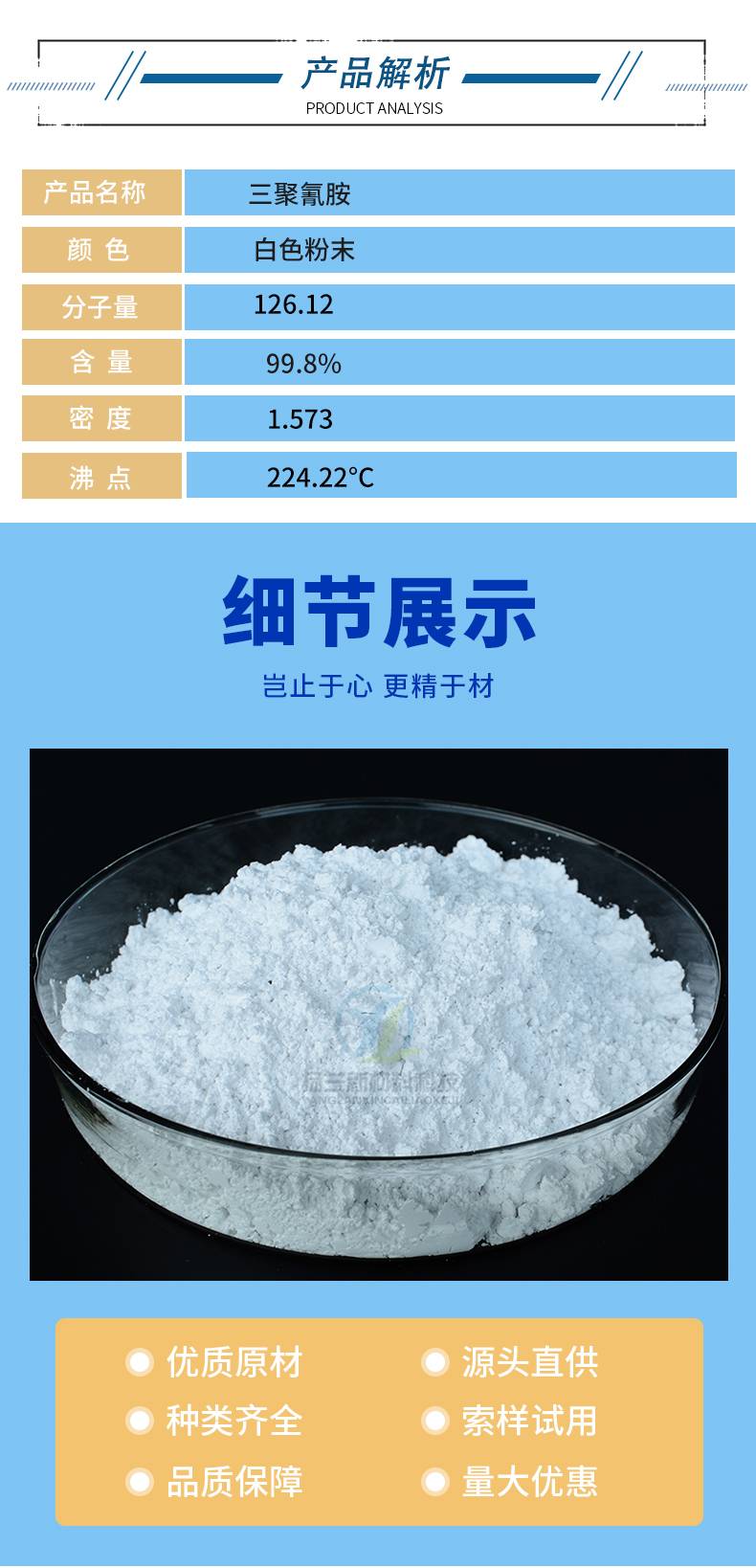 工业级三聚氰胺 污水处理 皮革糅剂填充剂 橡胶粘合剂