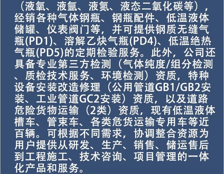 许可项目,危险化学品经营,危险化学品仓储,移动式压力容器\/气瓶充装,特种设备检验检测,道路危险货物运输,食品添加剂生产一般项目,特种设备出租,特种设备销售,租赁服务,食品添加剂销售,基础化学原料制造