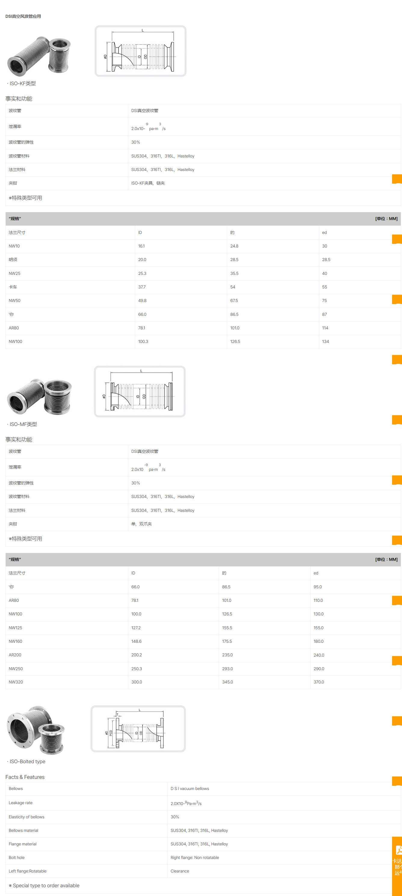 DSI Super Bellows SUS316 石油和天然气领域 高耐蚀性 强度确保了安全