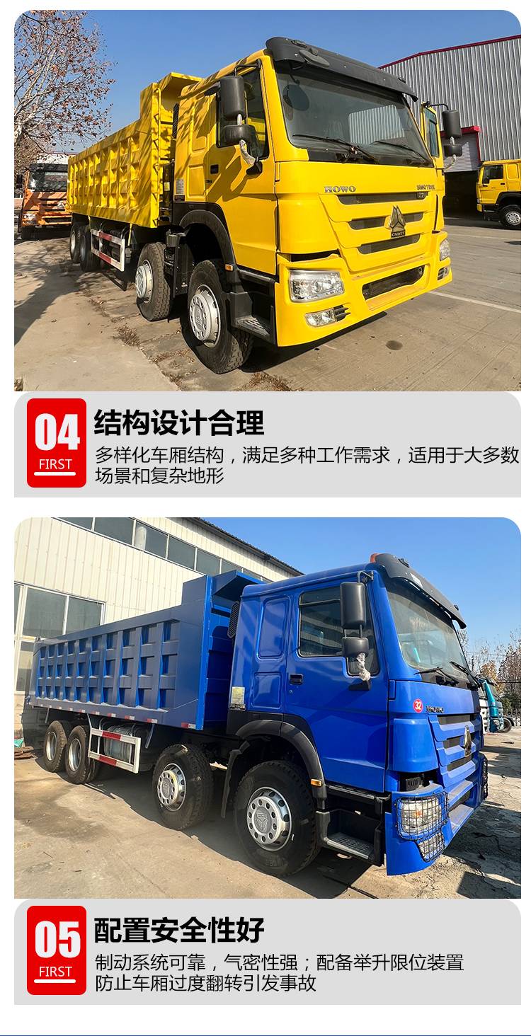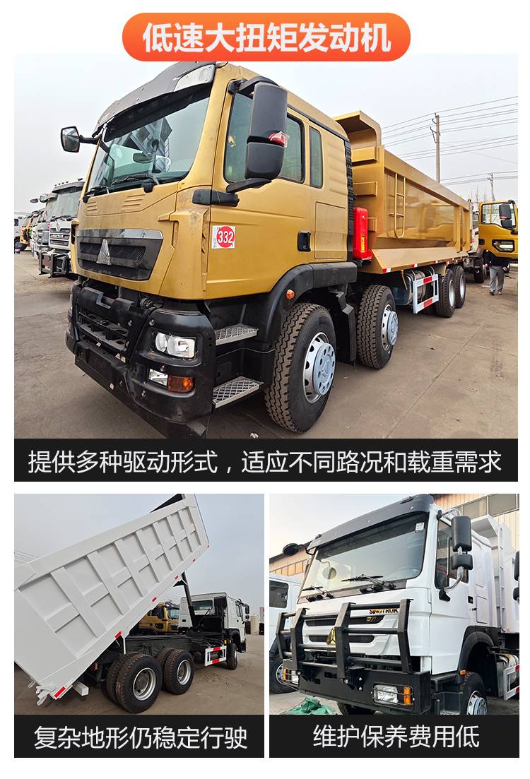 外贸HOWO豪沃8x4自卸车375马力前四后八矿山砂石运输翻斗