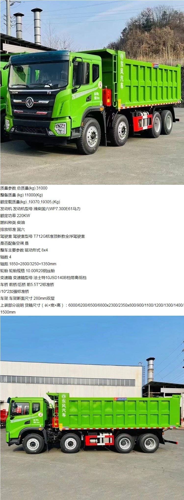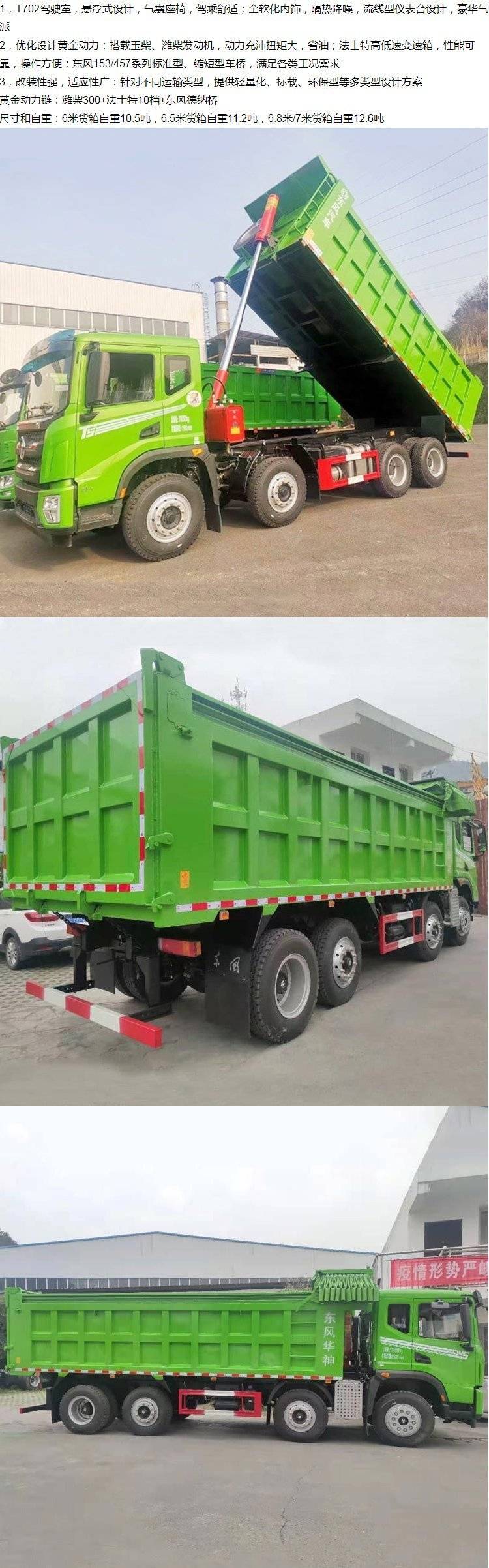 国六 东风华神 轻量化四桥翻斗车前四后八环保自卸车渣土车