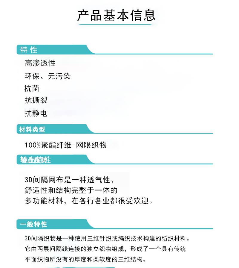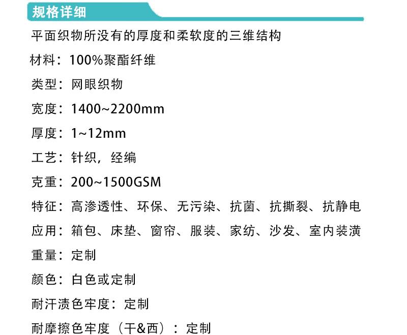 3D间隔网眼布 箱包服装汽车内饰顶盖弹性聚酯面料 三维网格织物