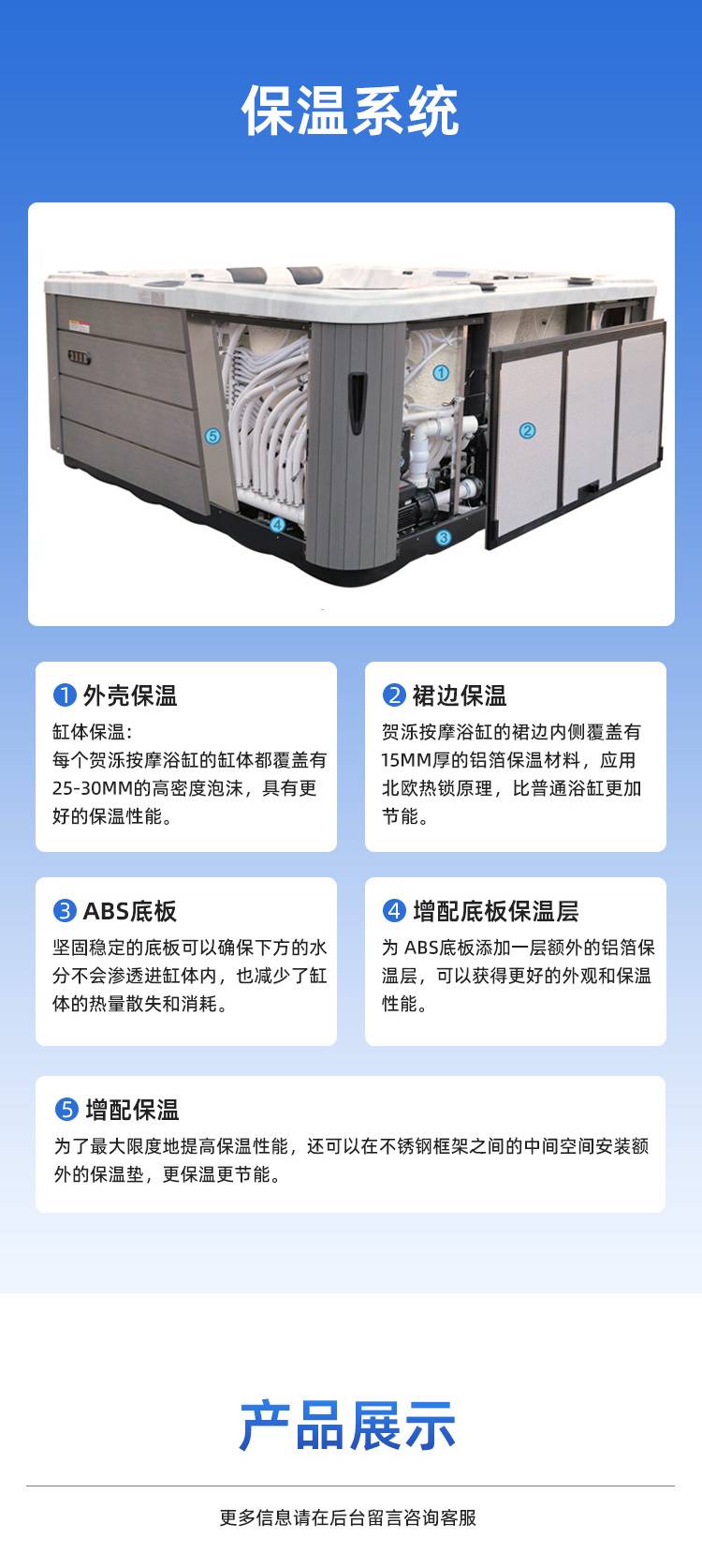 现代设计豪华水疗养生SPA 别墅温泉6人按摩智能恒温浴缸