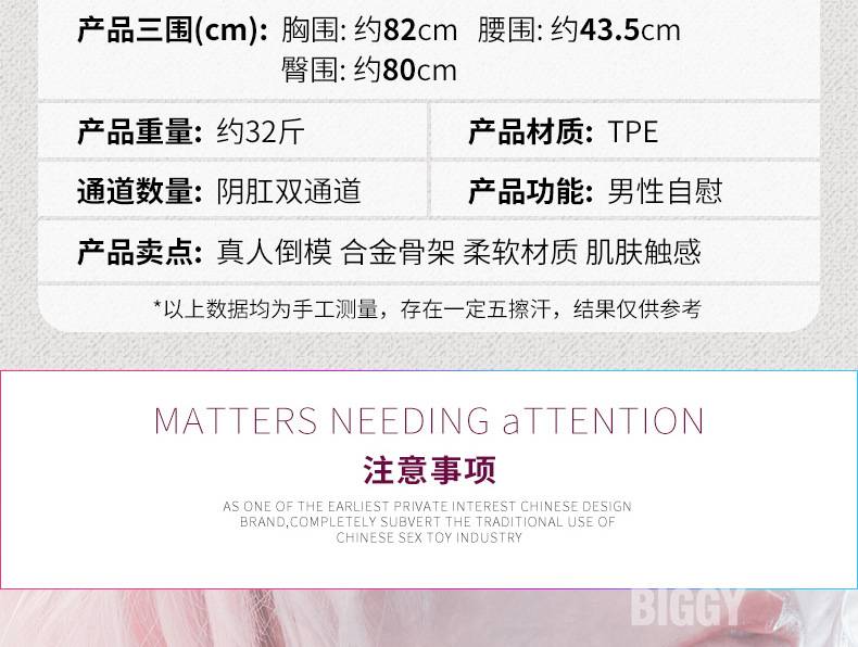 BIGGY非充气娃娃半身娃娃丰乳肥臀男用带骨架 实体情趣成人性用品