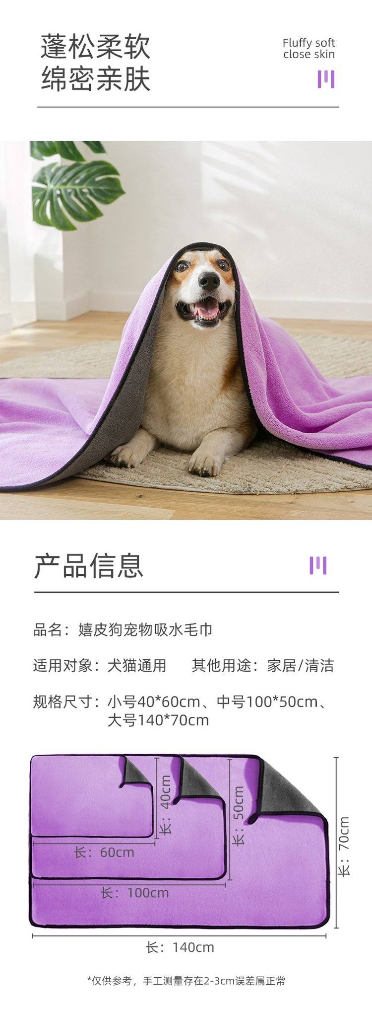 宠物超强吸水速干毛巾泰迪大号鹿皮加厚浴巾宠物用品批发