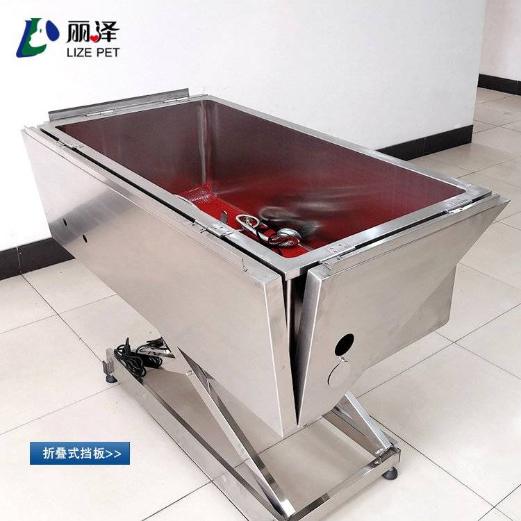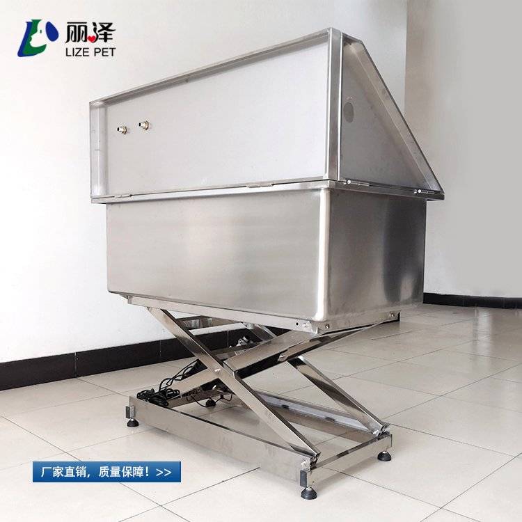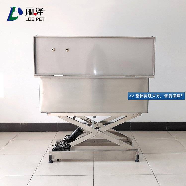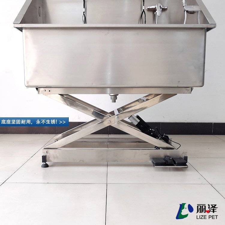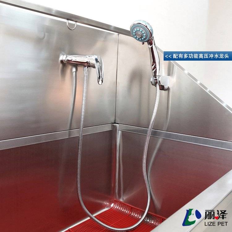 1.全不锈钢制作,整体采用1.2mm304不锈钢制作,配有电动升降开关自动调节,并配有多功能高压冲水龙头,此水槽特别适合各大小宠物美容店为宠物洗浴。
