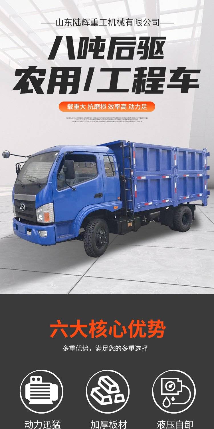 陆辉豪华平头运输车 拉土农用四不像车 大型后八轮自卸侧翻斗车