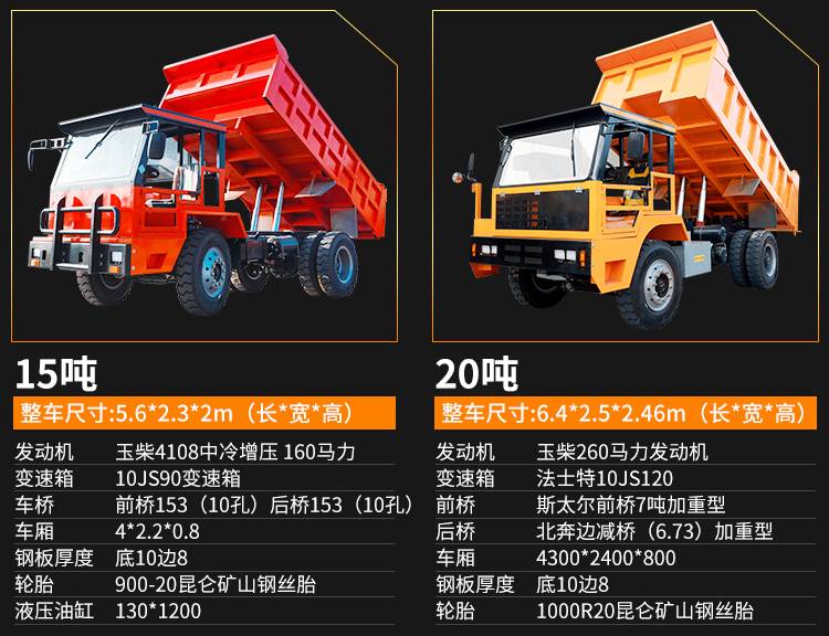 15吨平头井下自卸车 矿山运料车 后驱四驱可选择