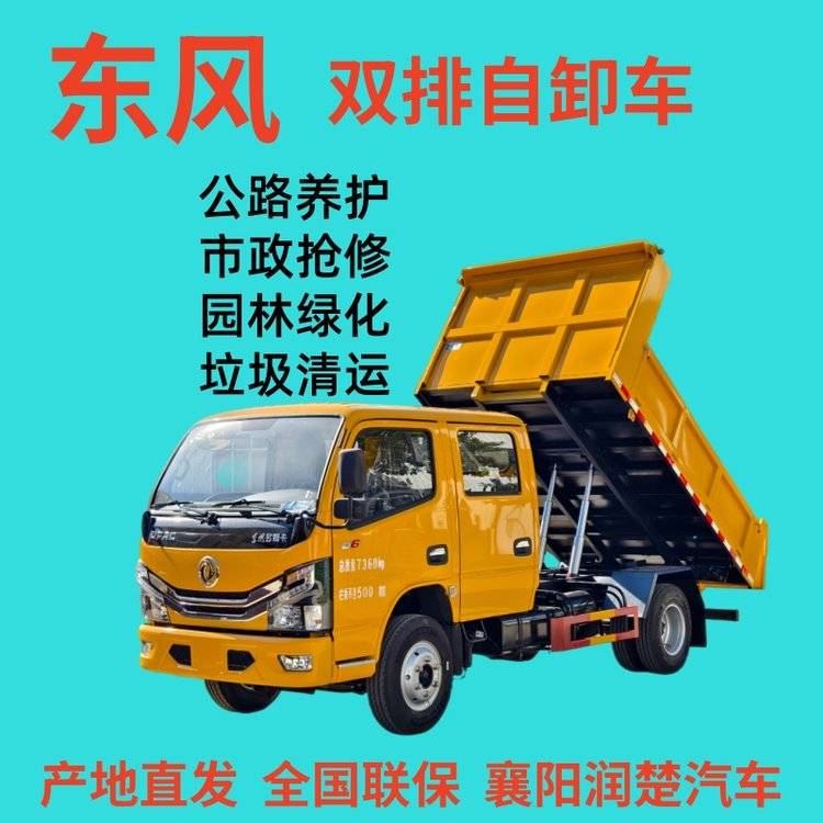 东风轻型5人双排栏板自卸货车 自卸式垃圾收运车 3米平头柴油自卸车