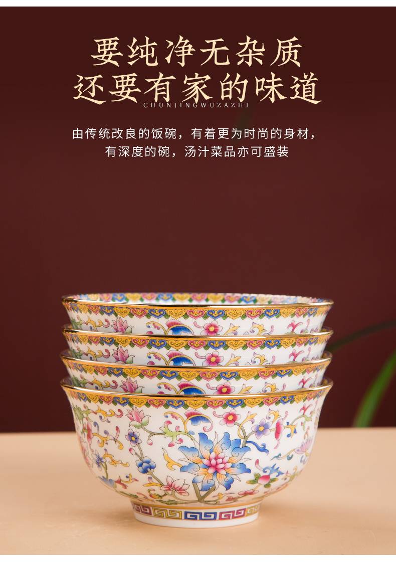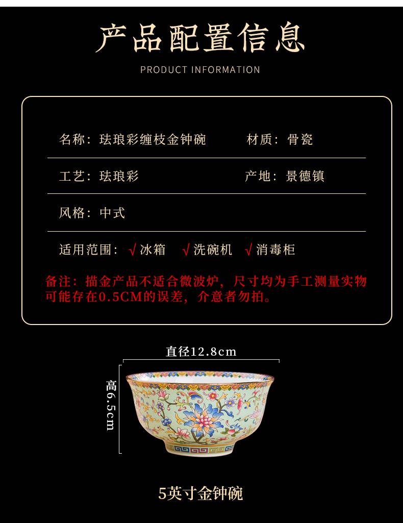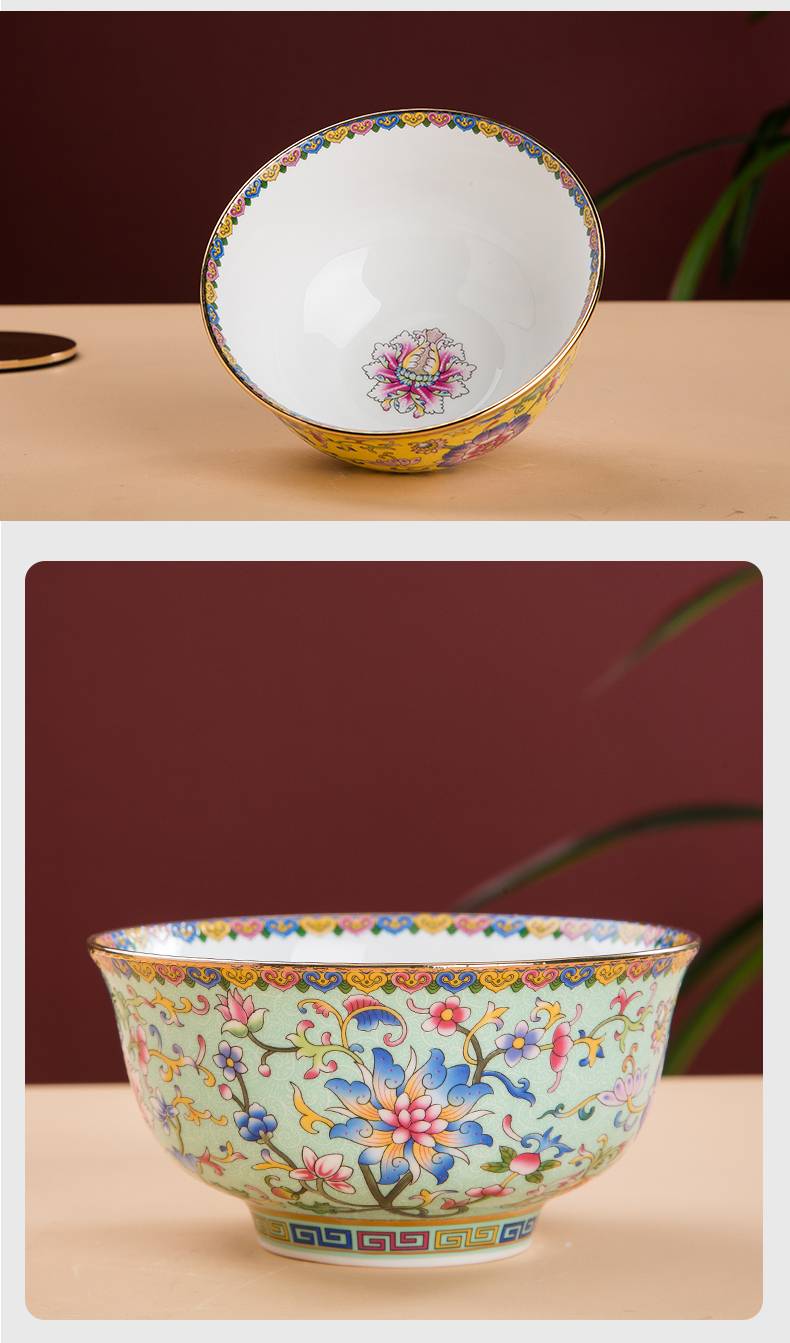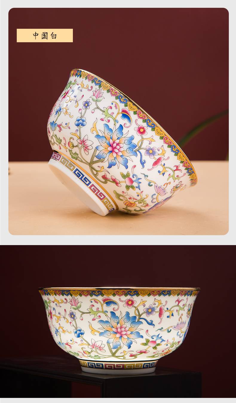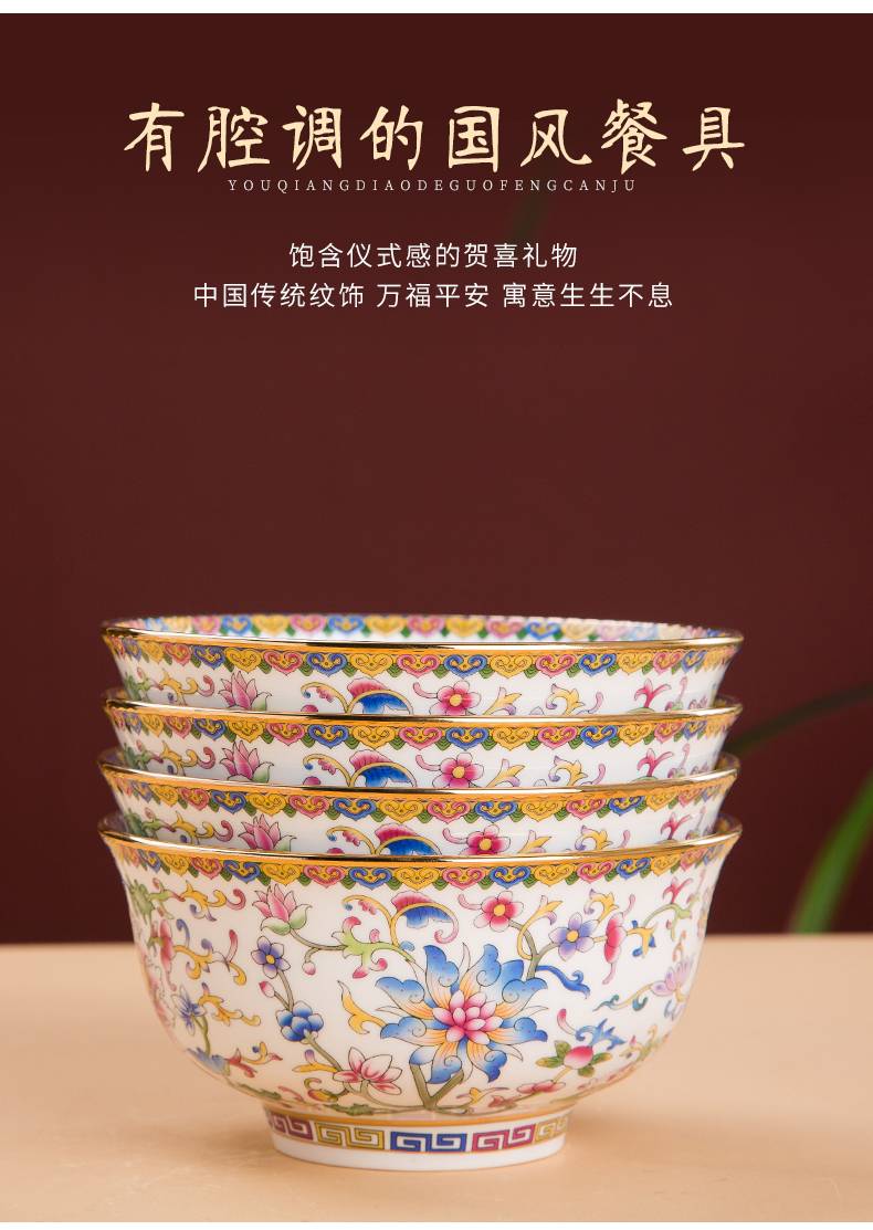 骨瓷碗描金扒花珐琅彩金钟饭碗家用单个高脚防烫中式宫廷风餐具