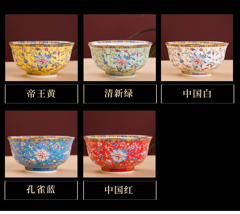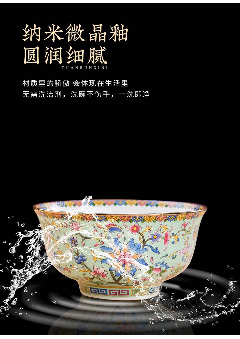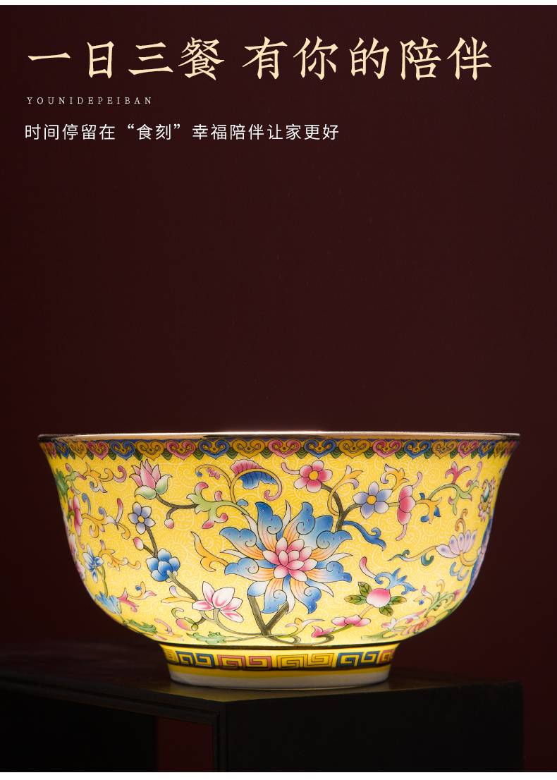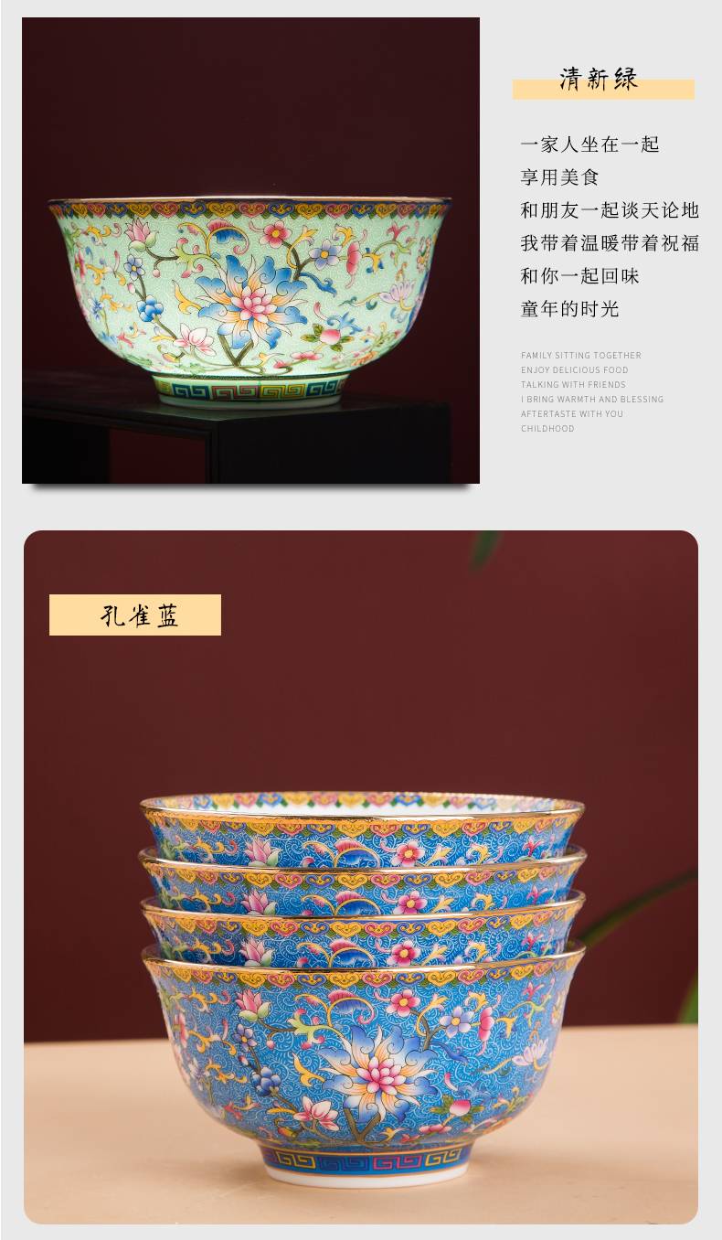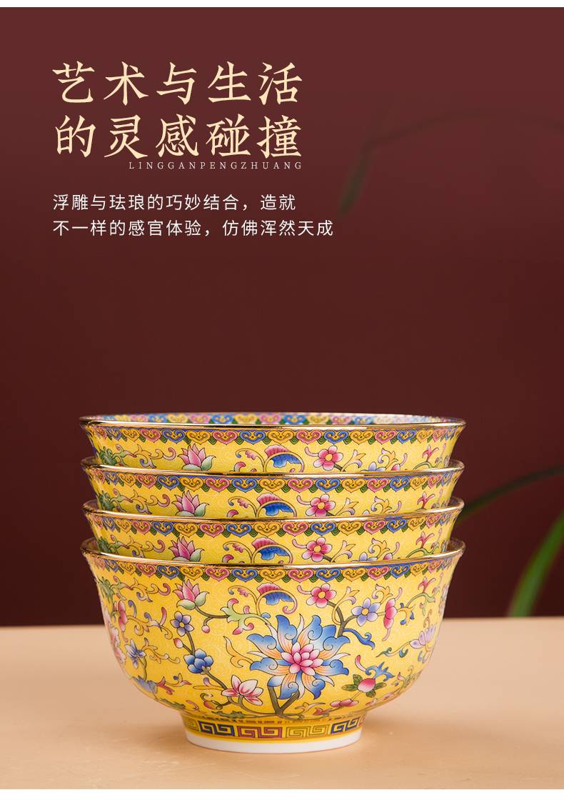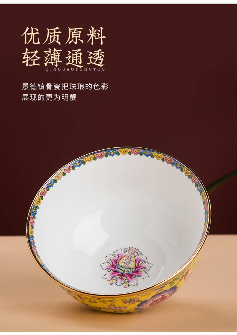 骨瓷碗描金扒花珐琅彩金钟饭碗家用单个高脚防烫中式宫廷风餐具