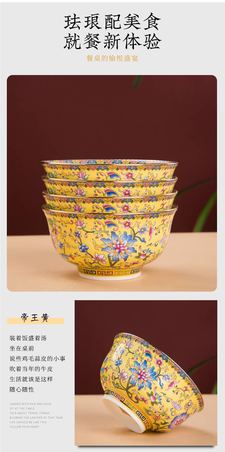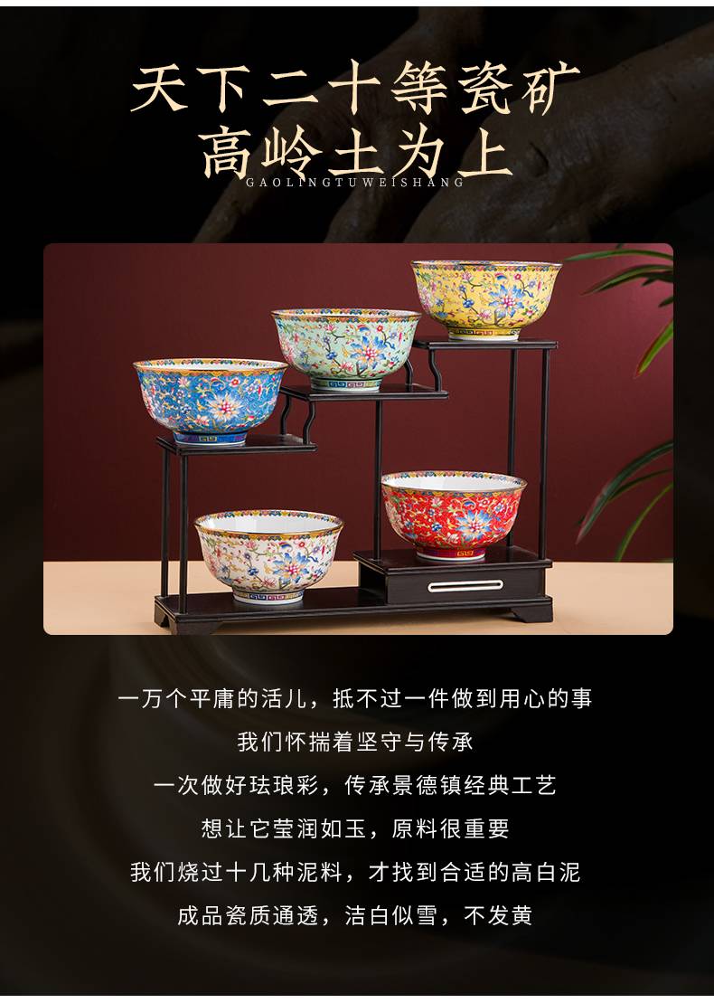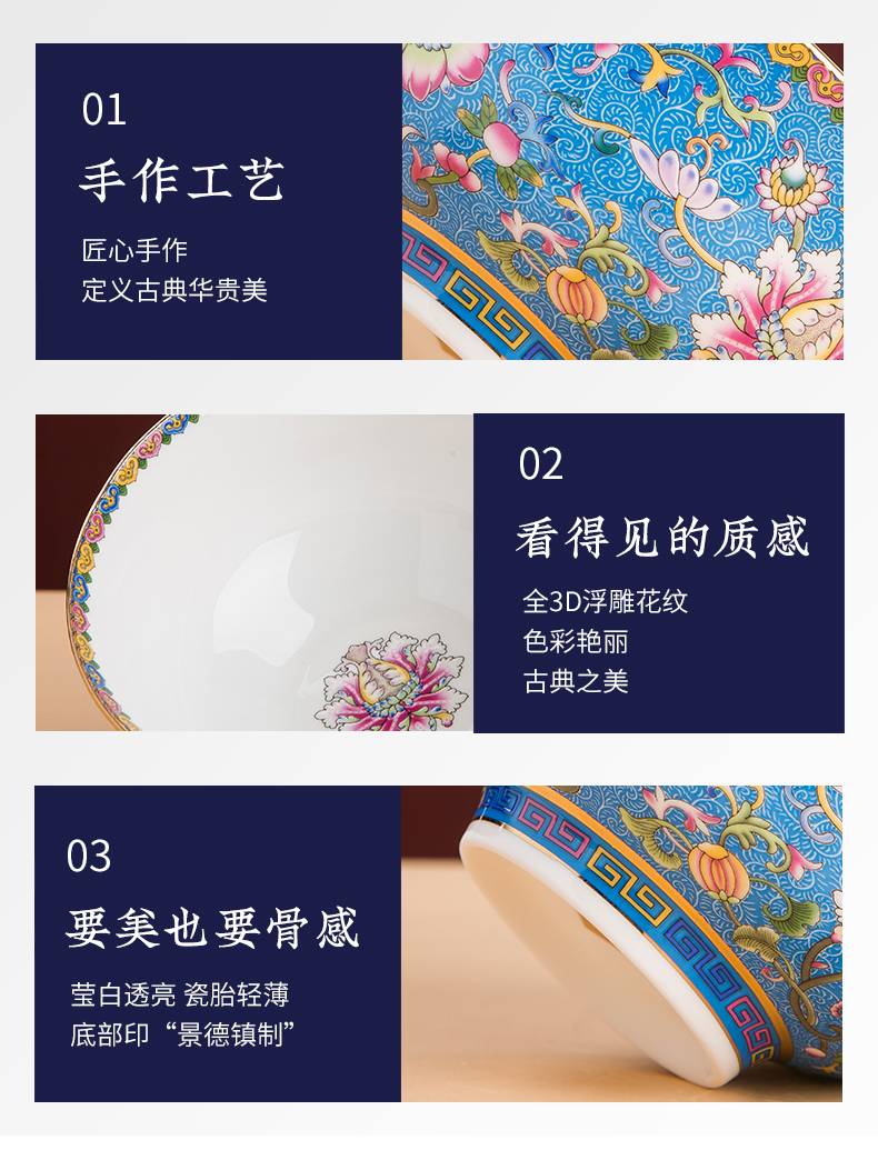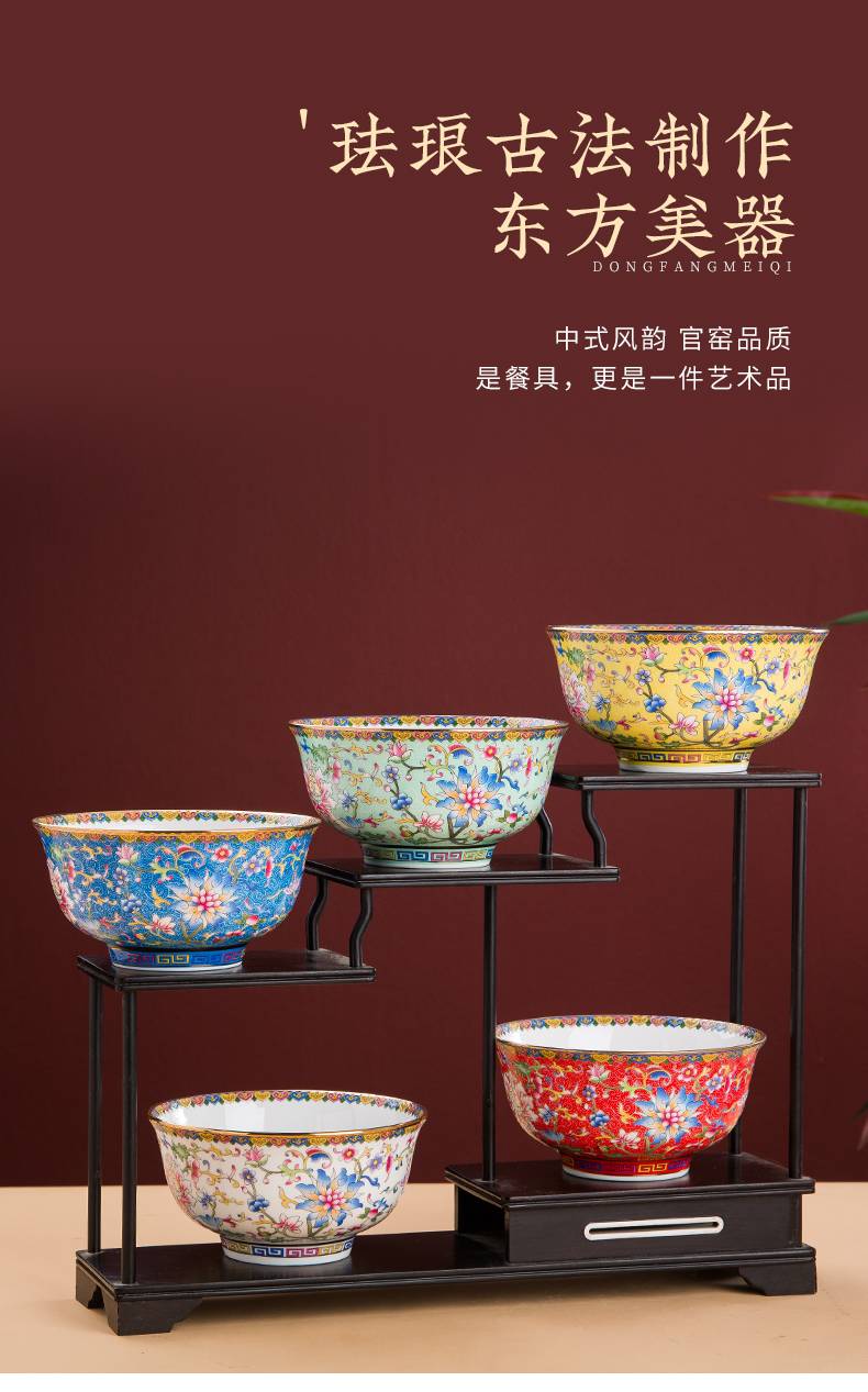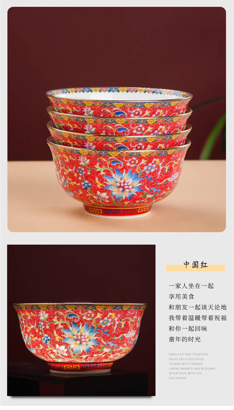 骨瓷碗描金扒花珐琅彩金钟饭碗家用单个高脚防烫中式宫廷风餐具