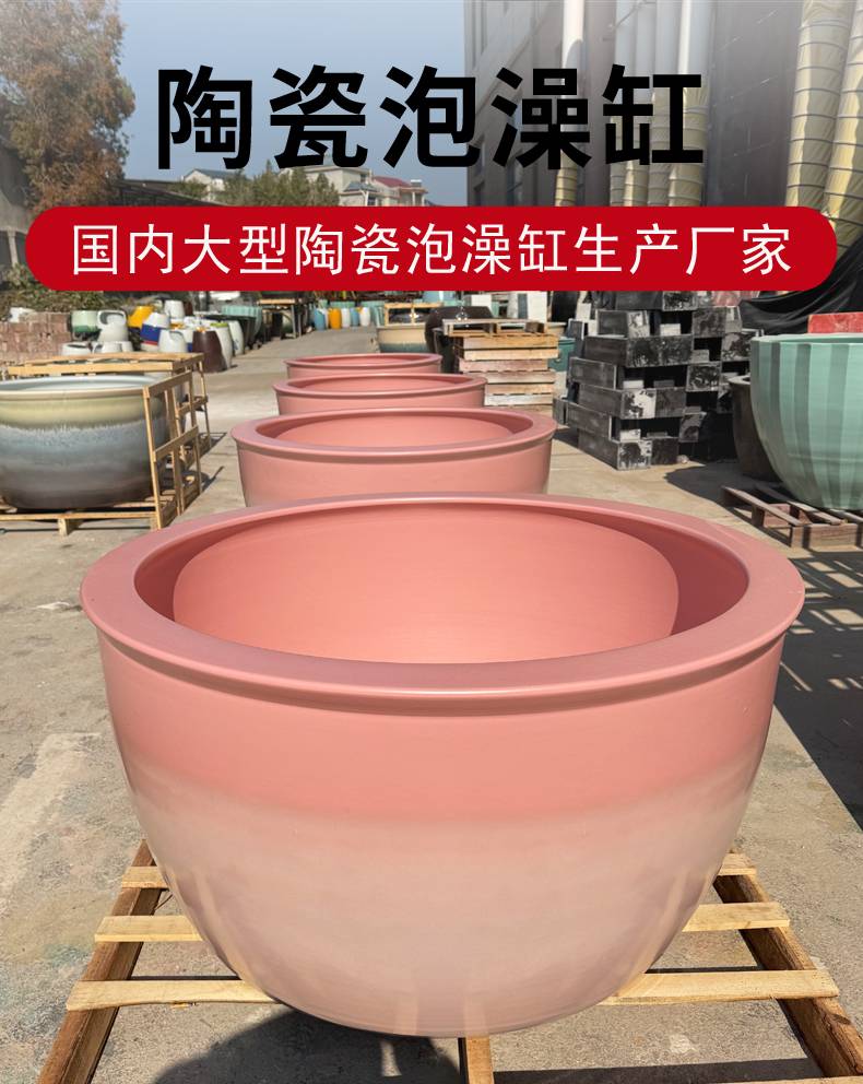 和艺陶瓷户外浴缸圆形1.2米渐变粉泡澡家用酒店洗浴大缸温泉池
