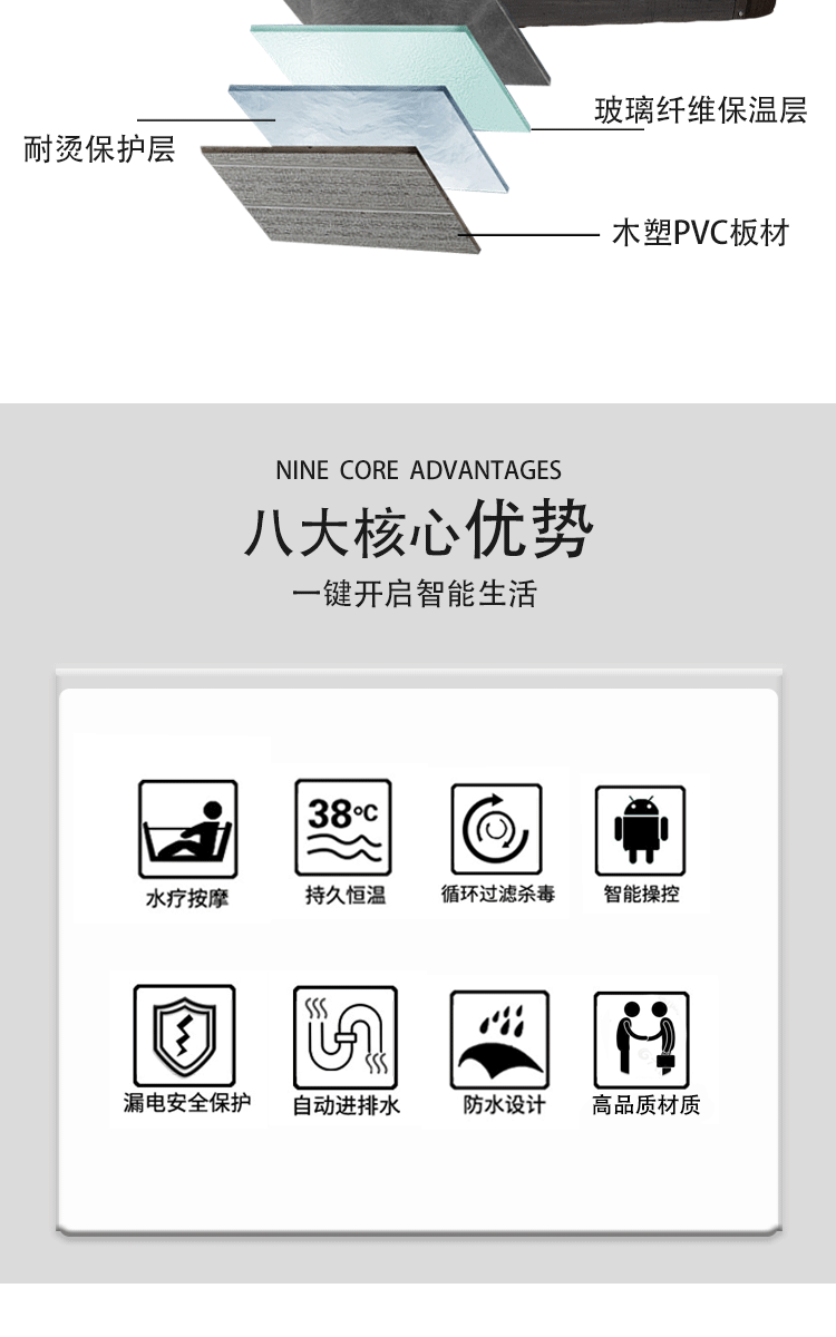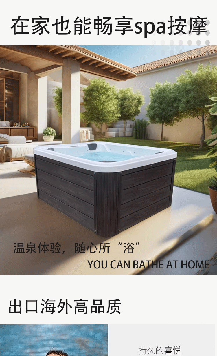 户外多功能冲浪式按摩浴缸自家庭院多人智能恒温加热水疗温泉泳池