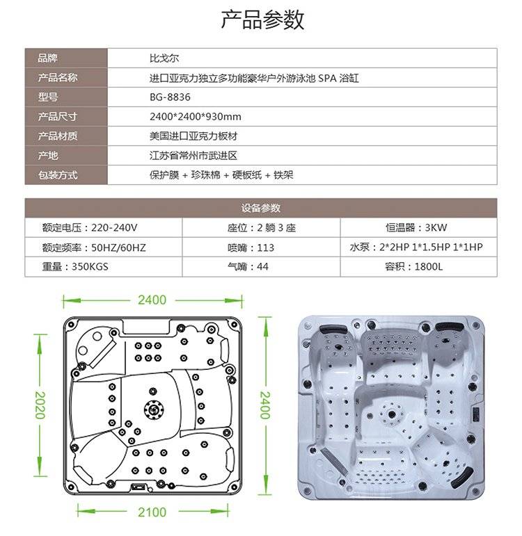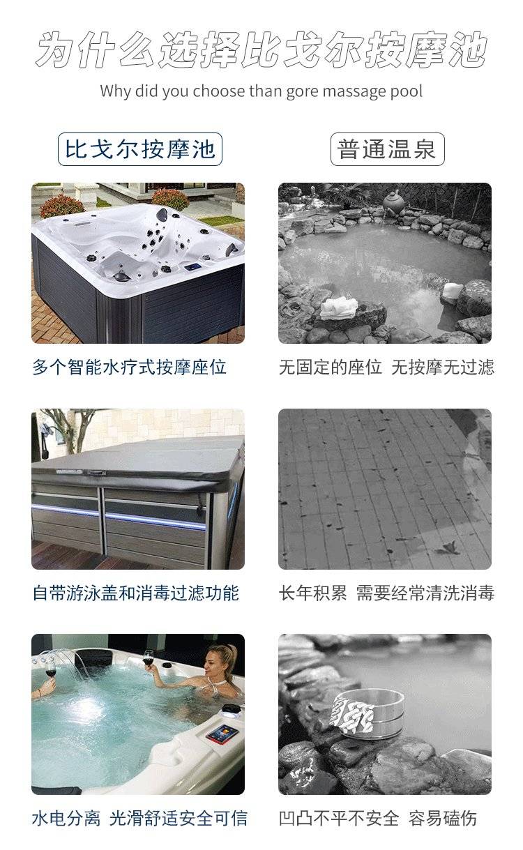 比戈尔别墅恒温按摩池户外spa按摩浴缸大型泡澡池