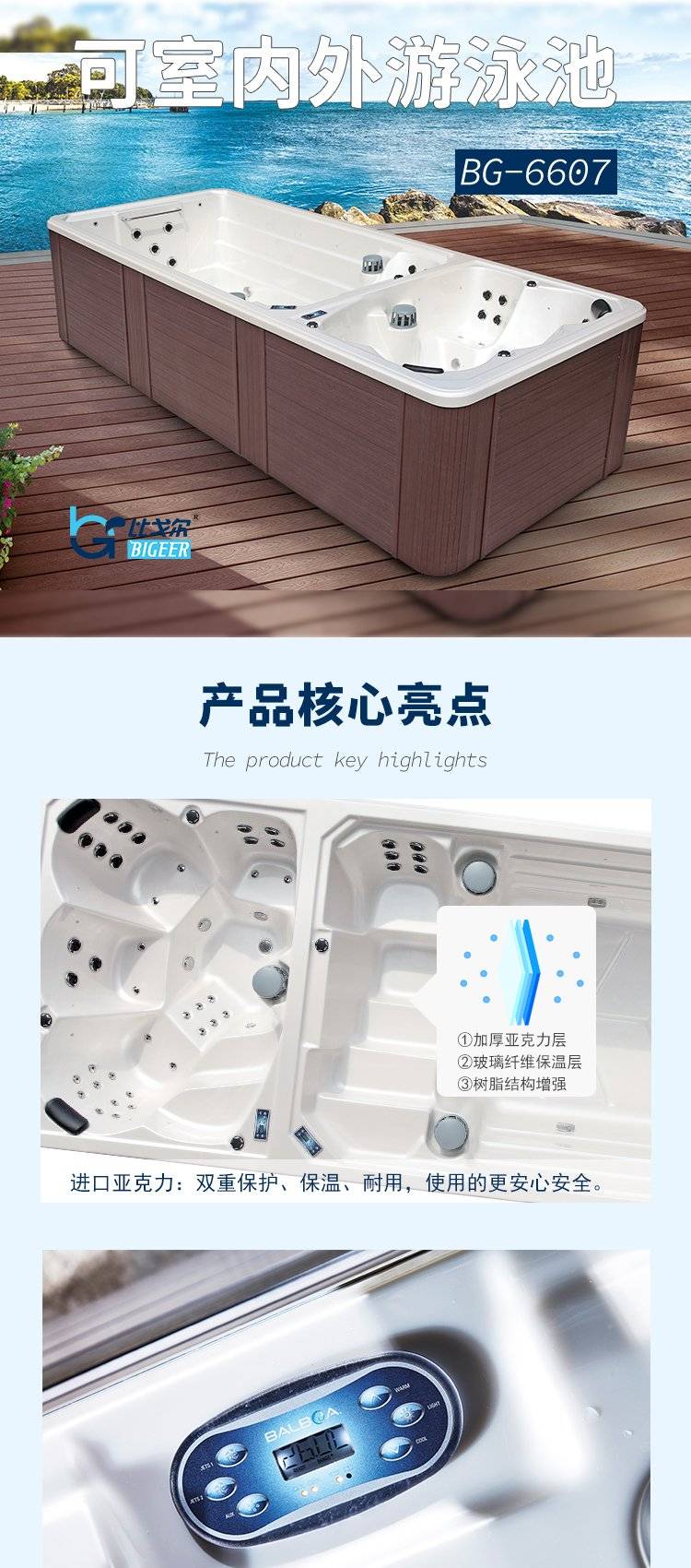 家用多人泡澡池 智能成品恒温游泳池 别墅户外大型恒温按摩浴缸