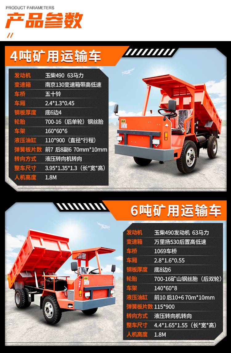 矿用井下尖头六轮运输车 UQ-25矿山用自卸车 加厚钢板矿山胎