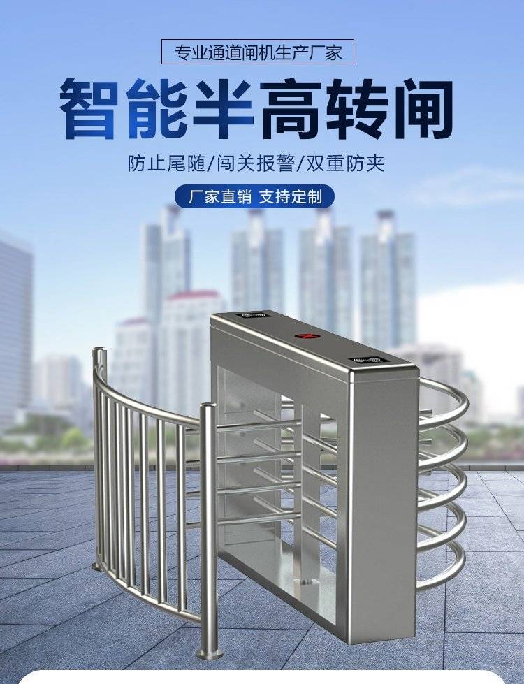 不锈钢单向半高转闸,高铁站弧形导流门,盾标防护三排梳齿单向门