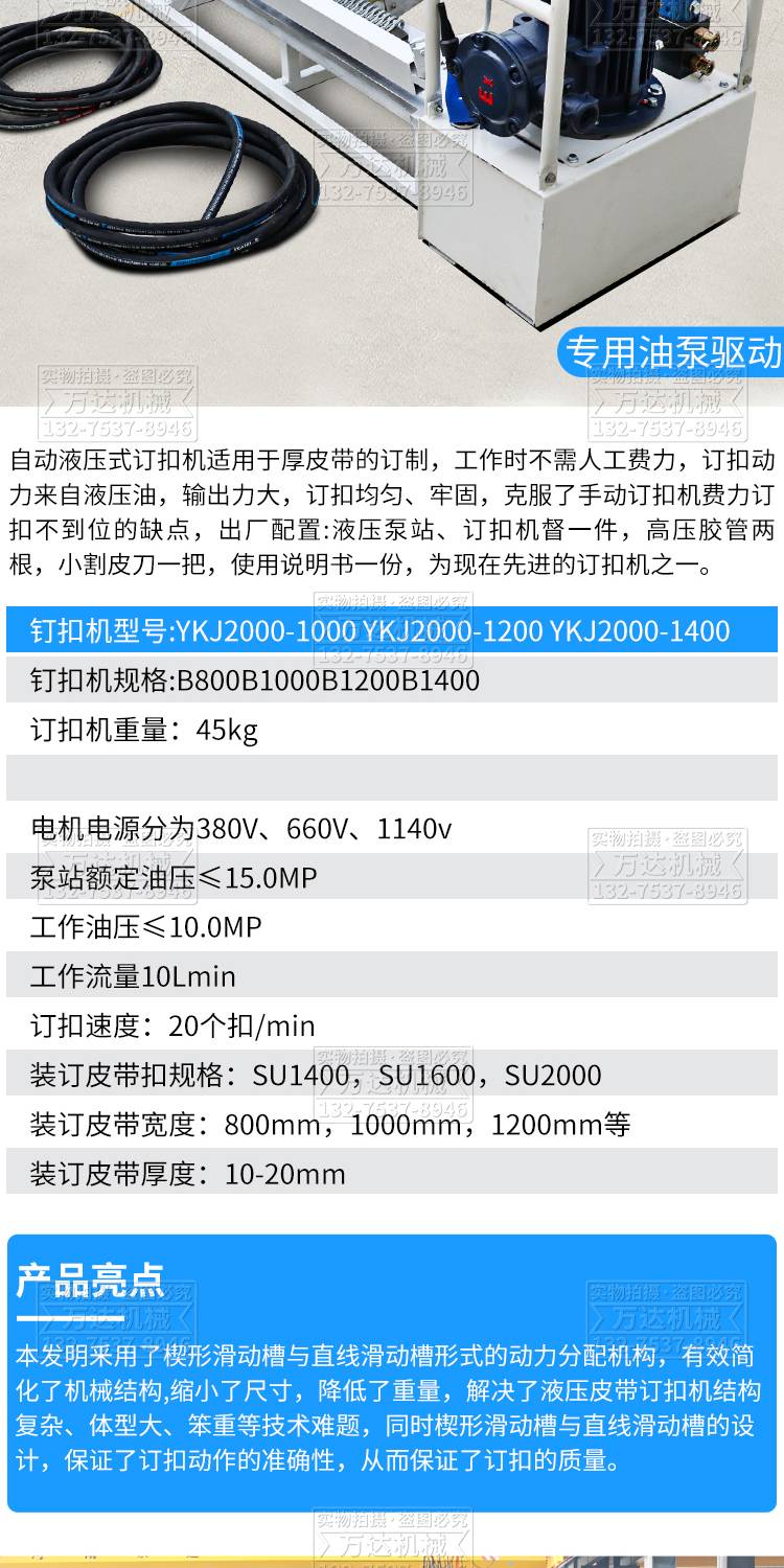 电动液压皮带钉扣机矿用高强度防爆输送带连接修补装订机