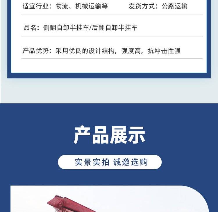 轻量化侧翻半挂车 13米自卸车 半挂运输车 刚度韧性好