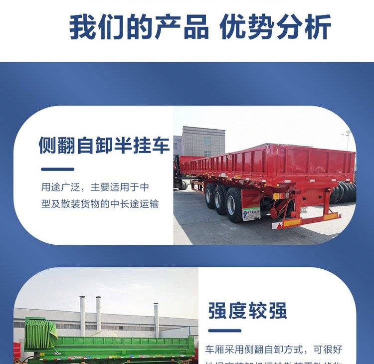 矿山侧翻自卸半挂车 13米轻量化运输车 刚度韧性好