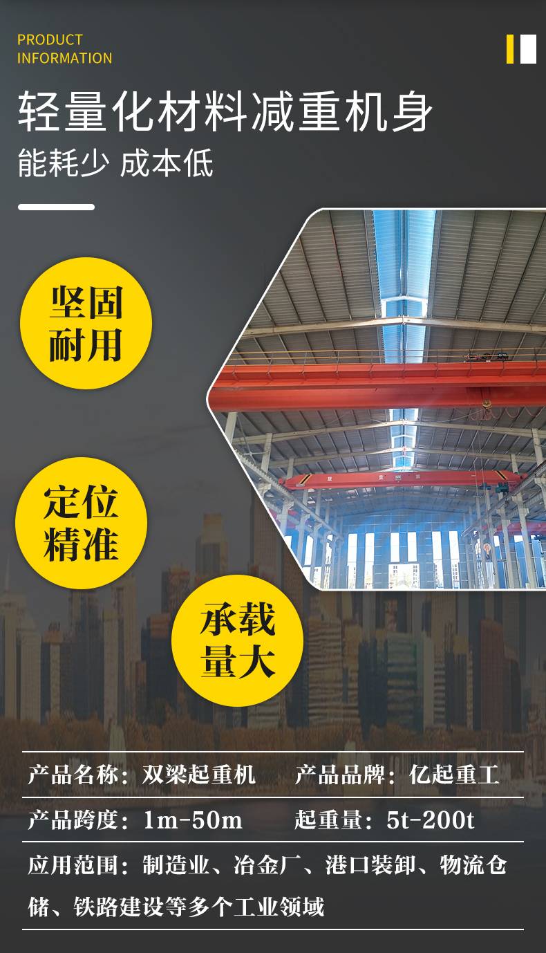 双梁桥式起重机 20吨工业起重吊装天车 高效灵活物料搬运悬挂式行车