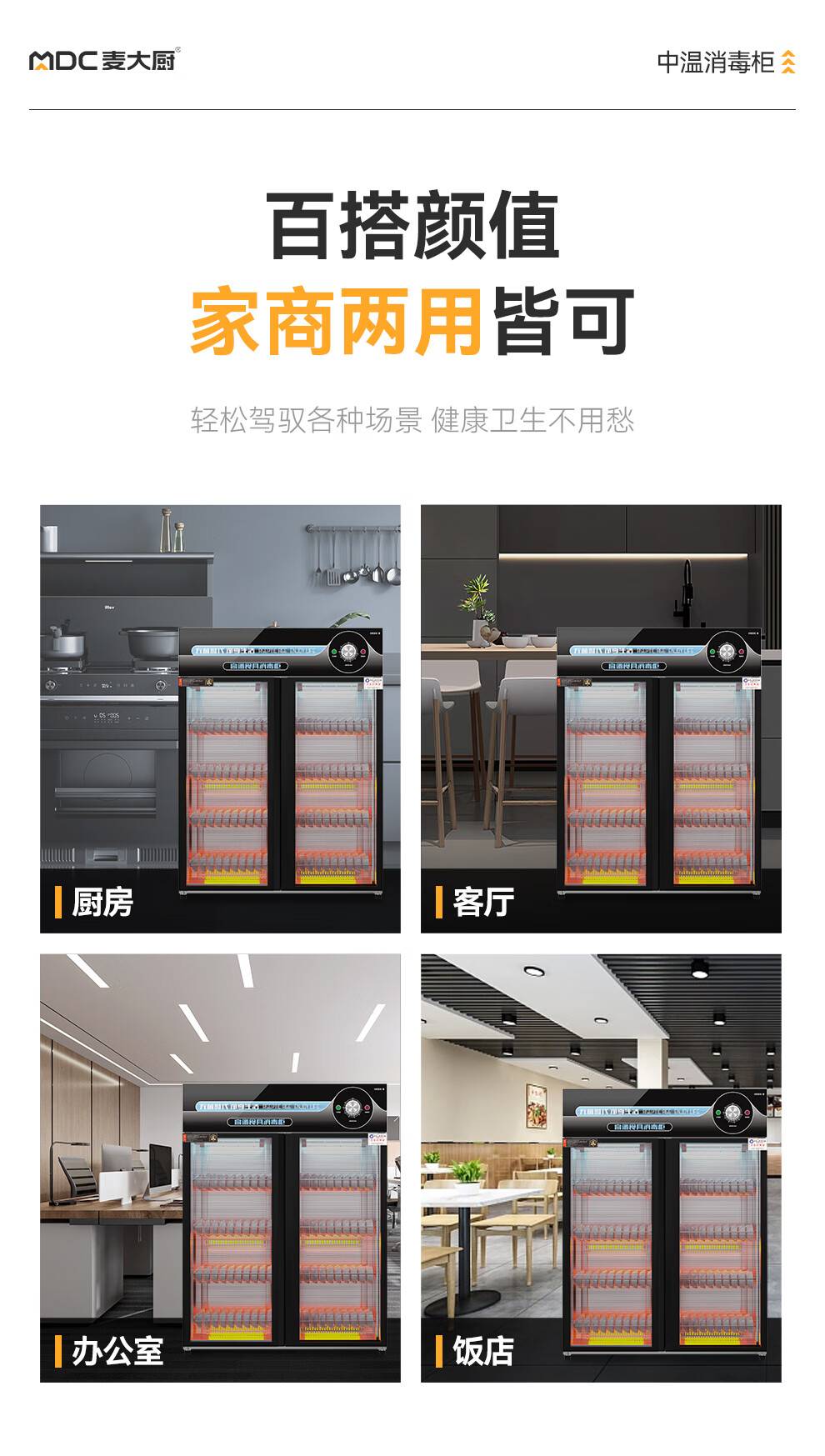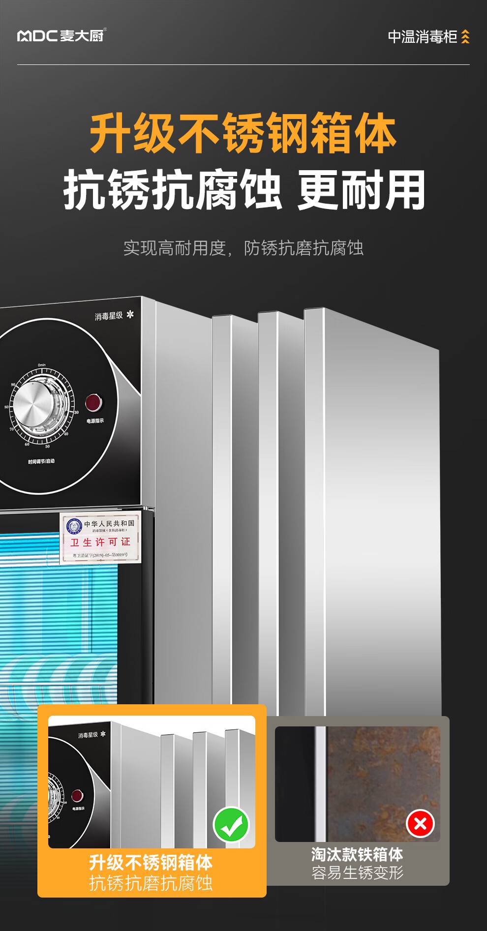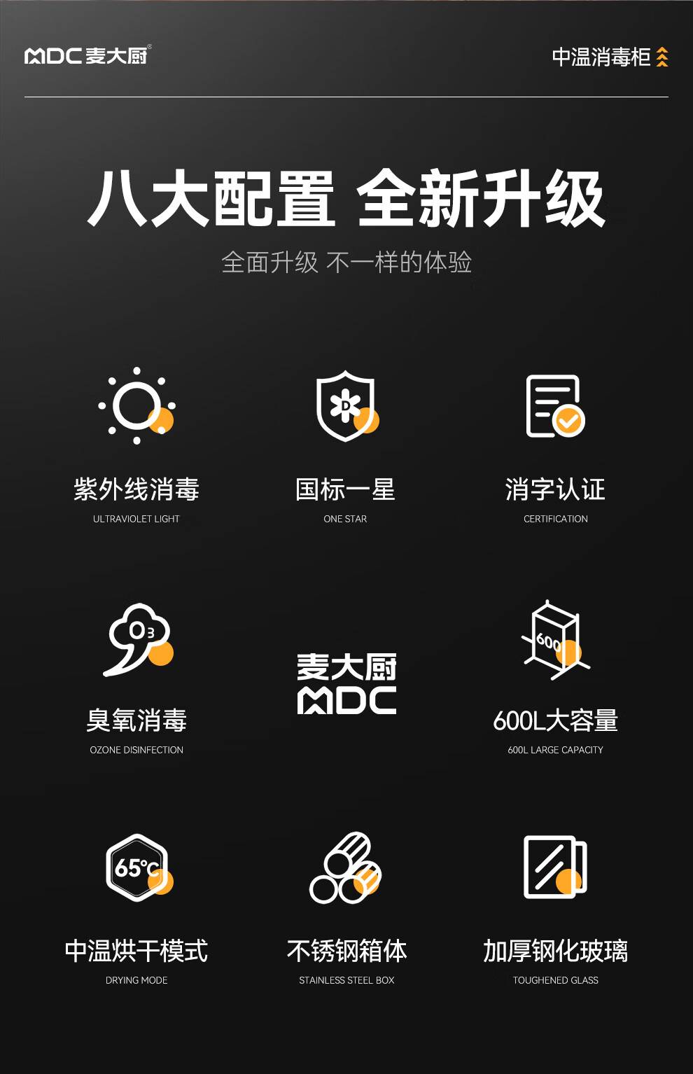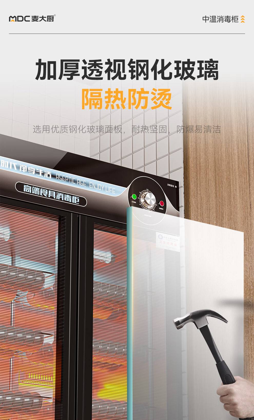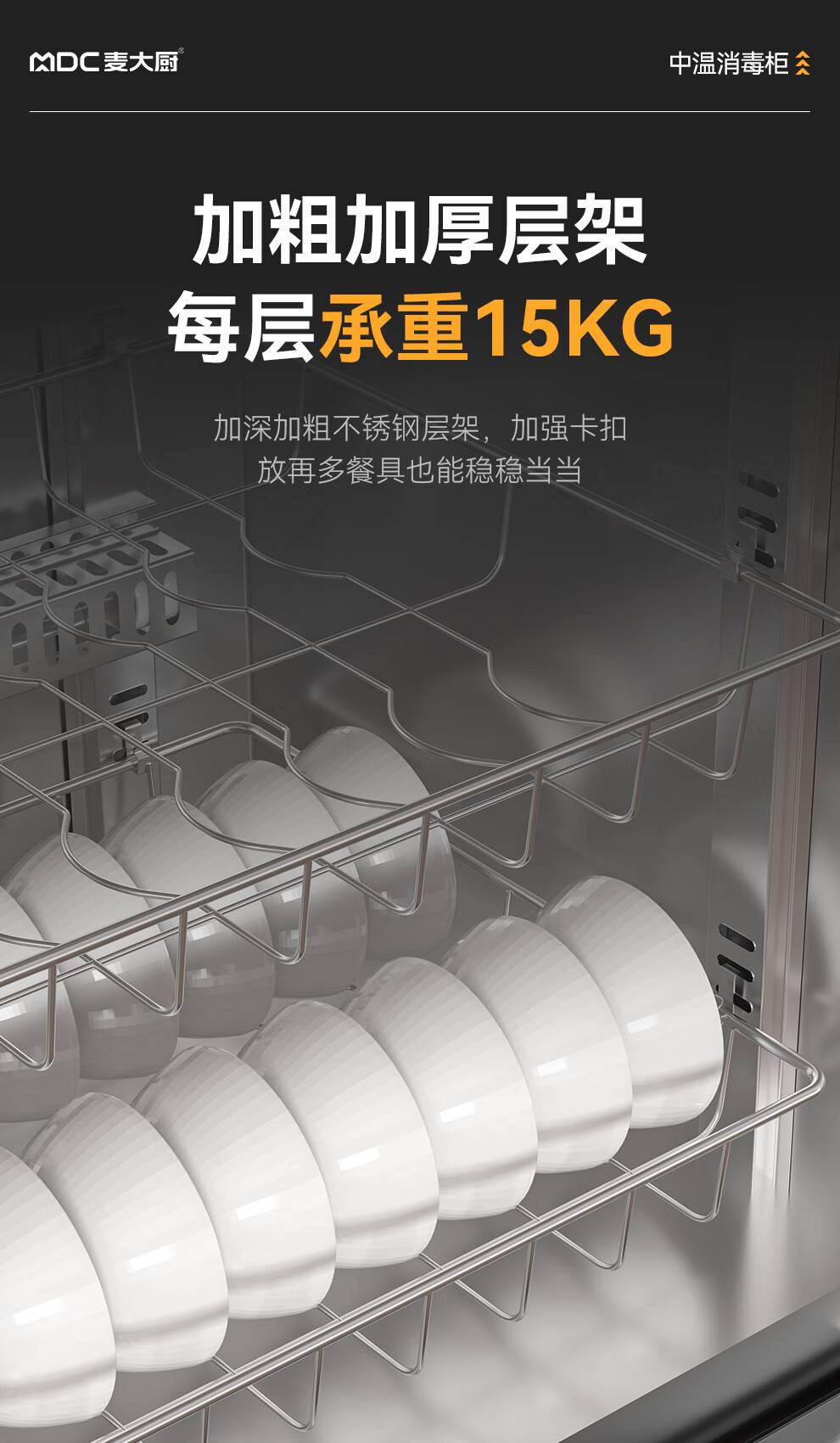 麦大厨高端旋钮款610W单门600L中温玻璃食具紫外线消毒柜