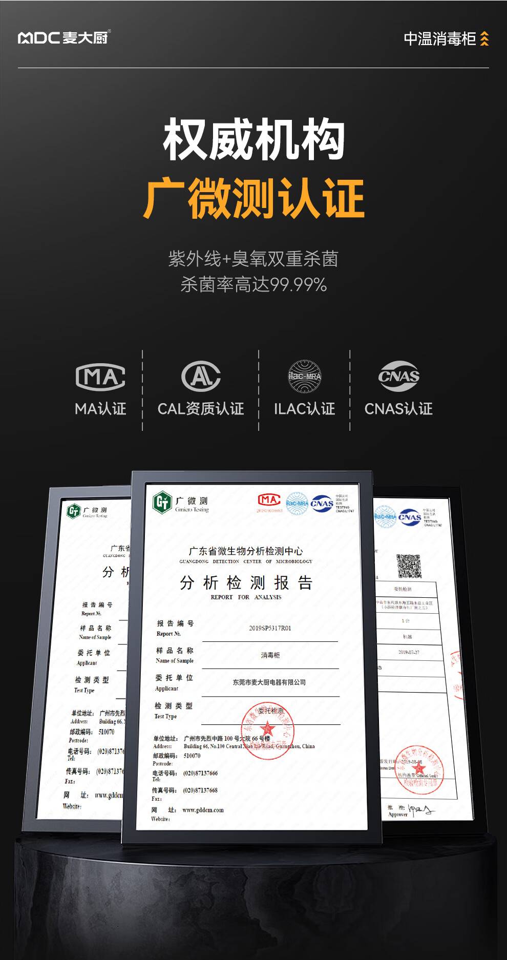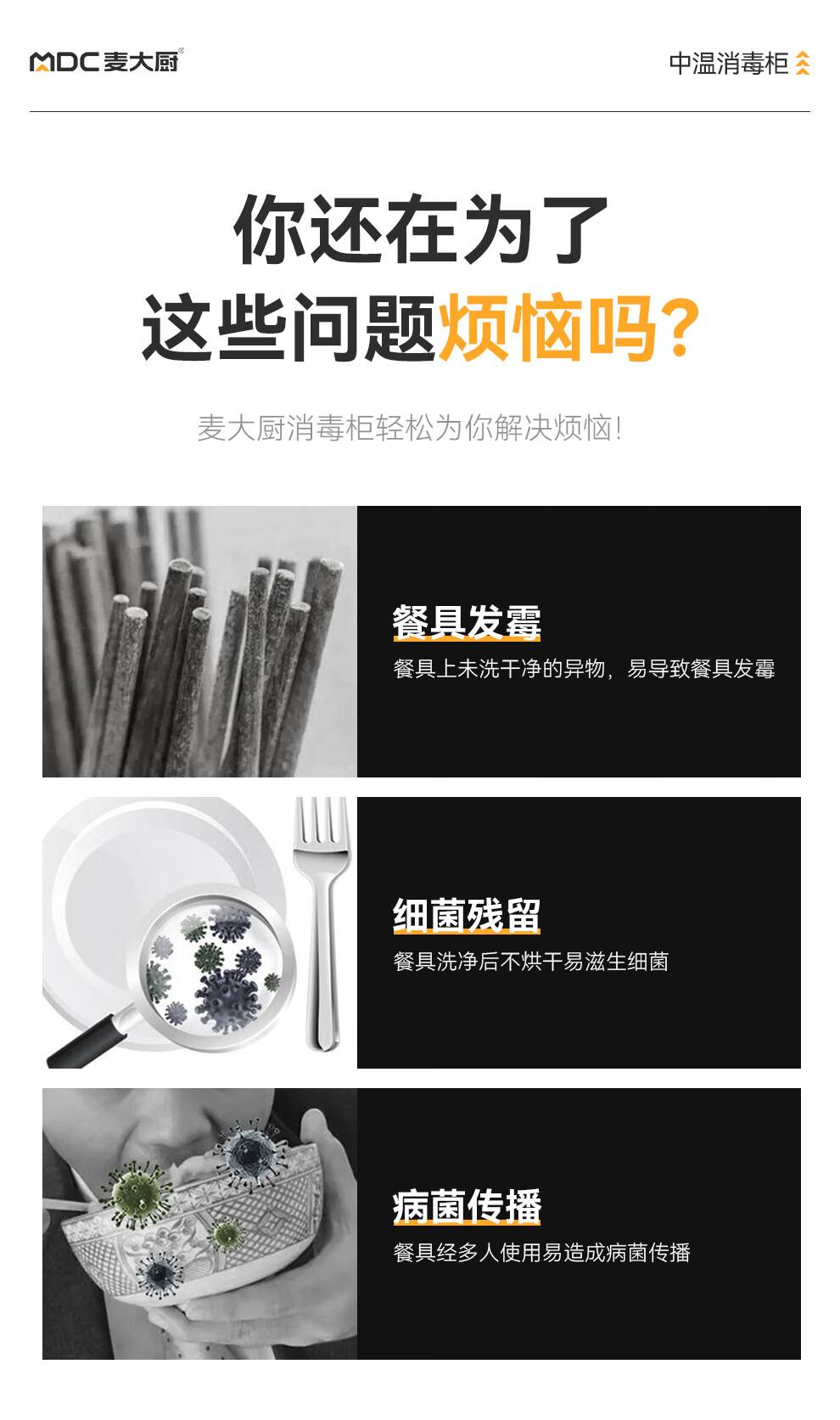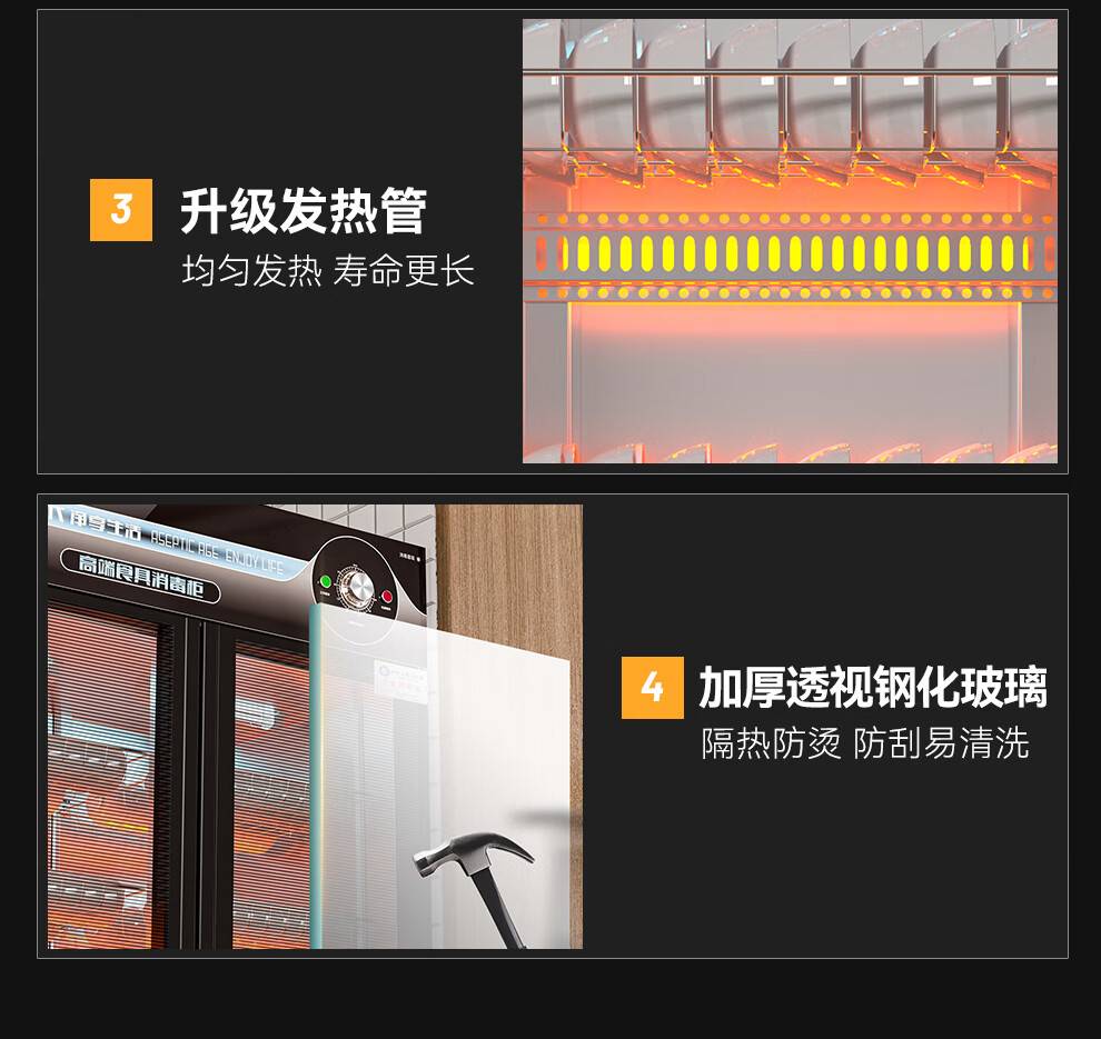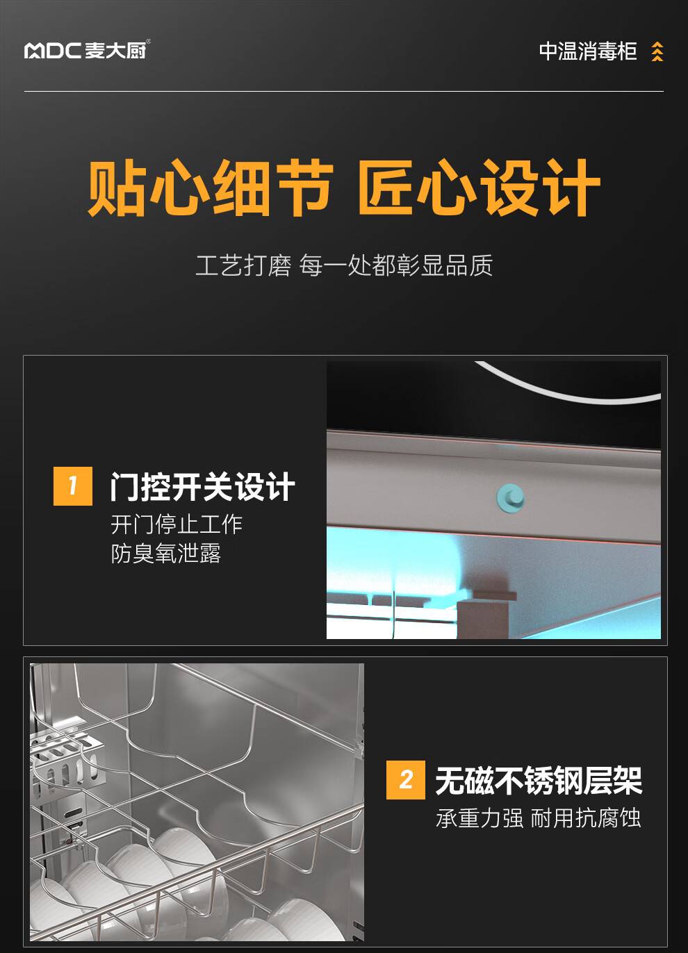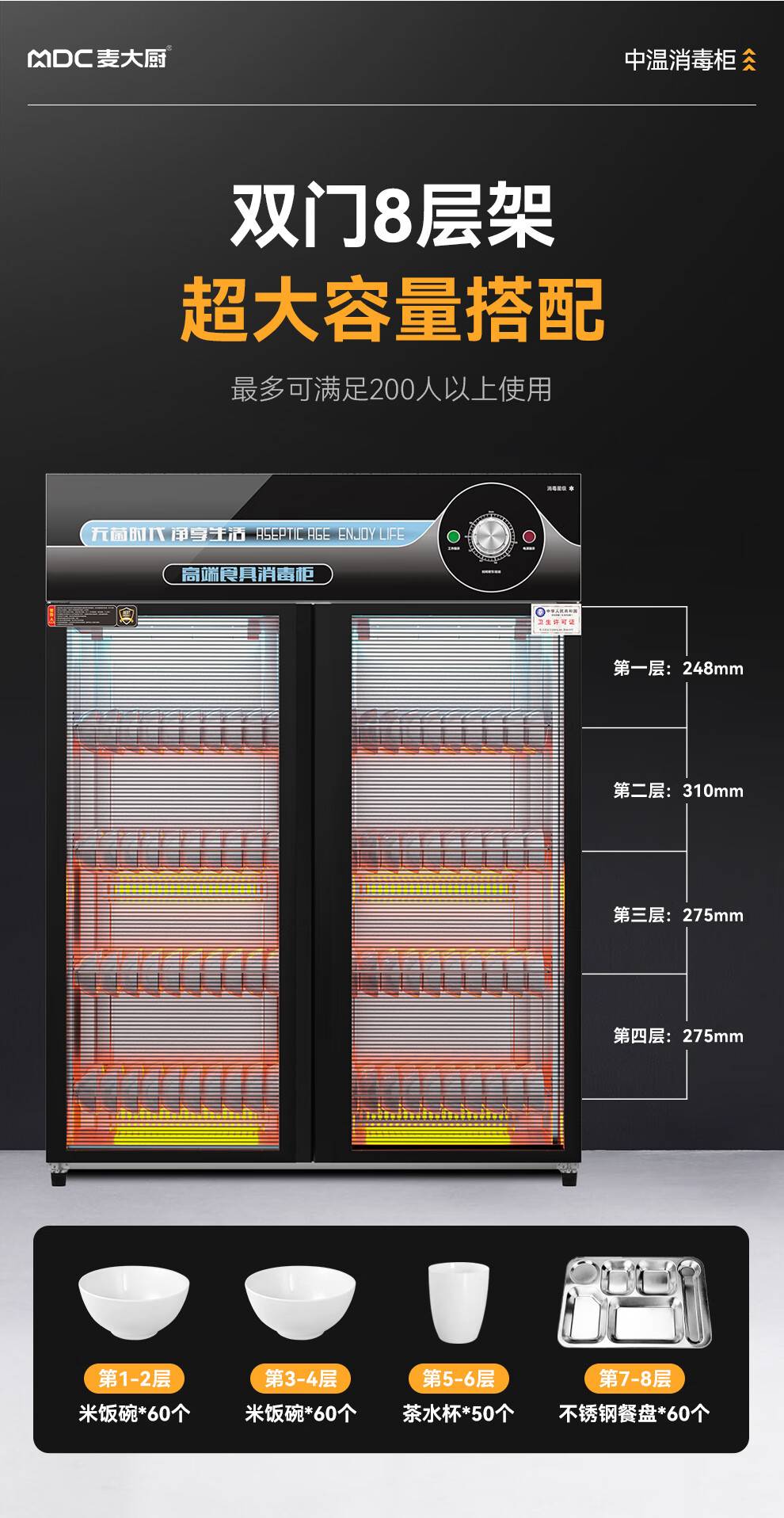 麦大厨高端旋钮款610W单门600L中温玻璃食具紫外线消毒柜