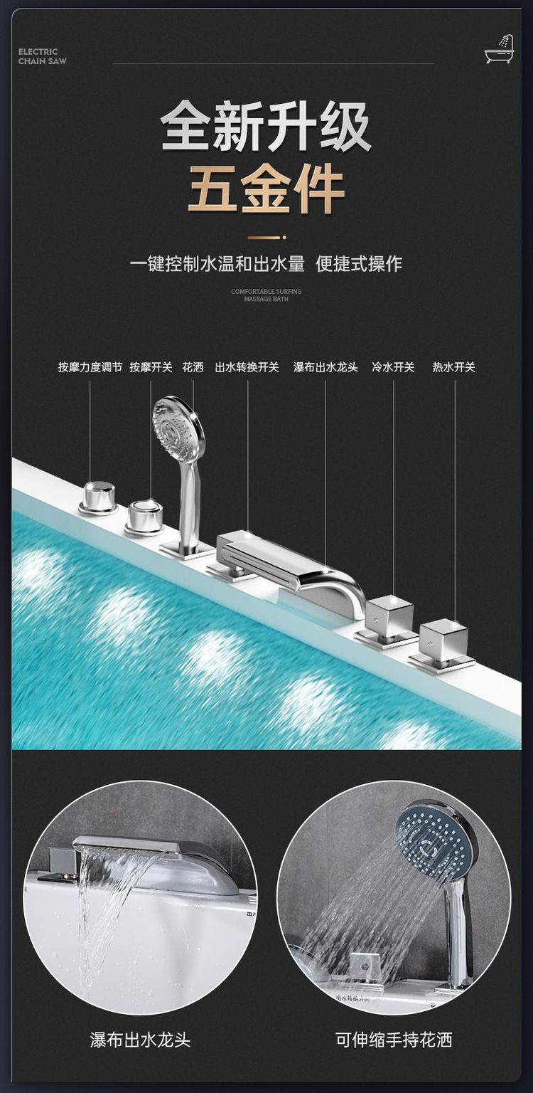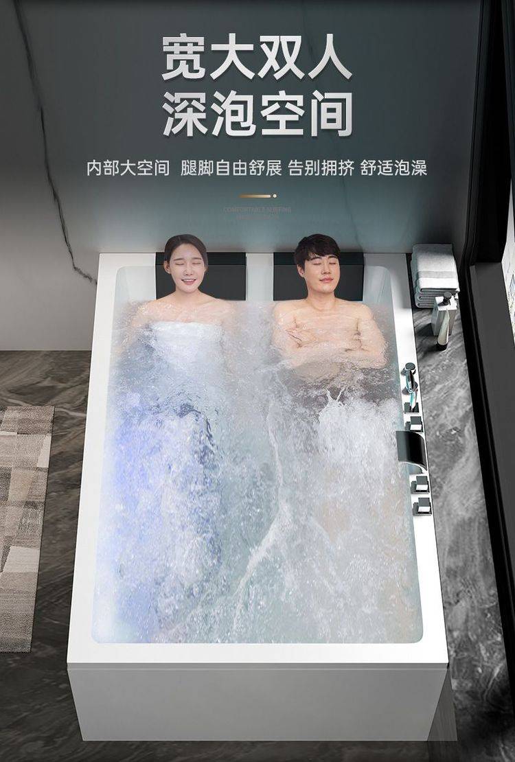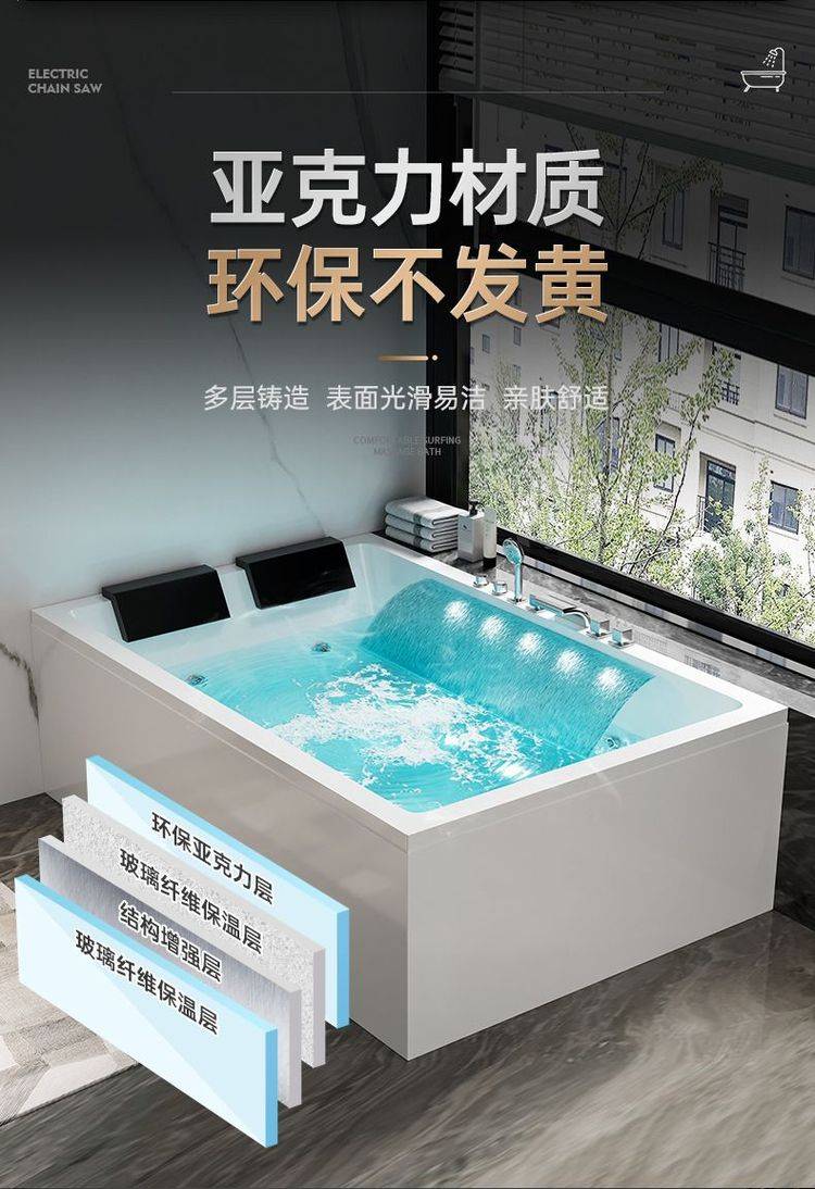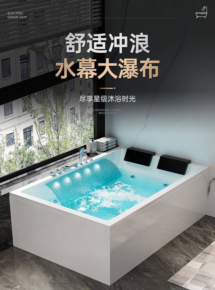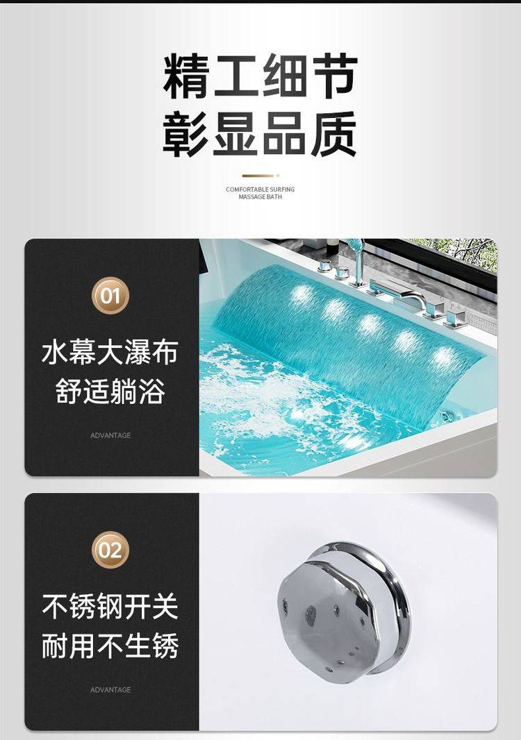 奎因情侣双人水幕大瀑布恒温加热按摩浴缸 舒适冲浪深泡空间家用