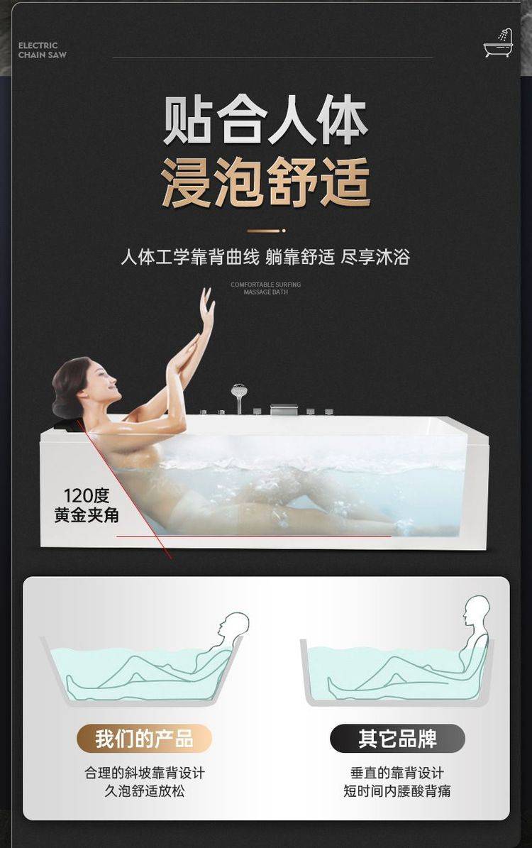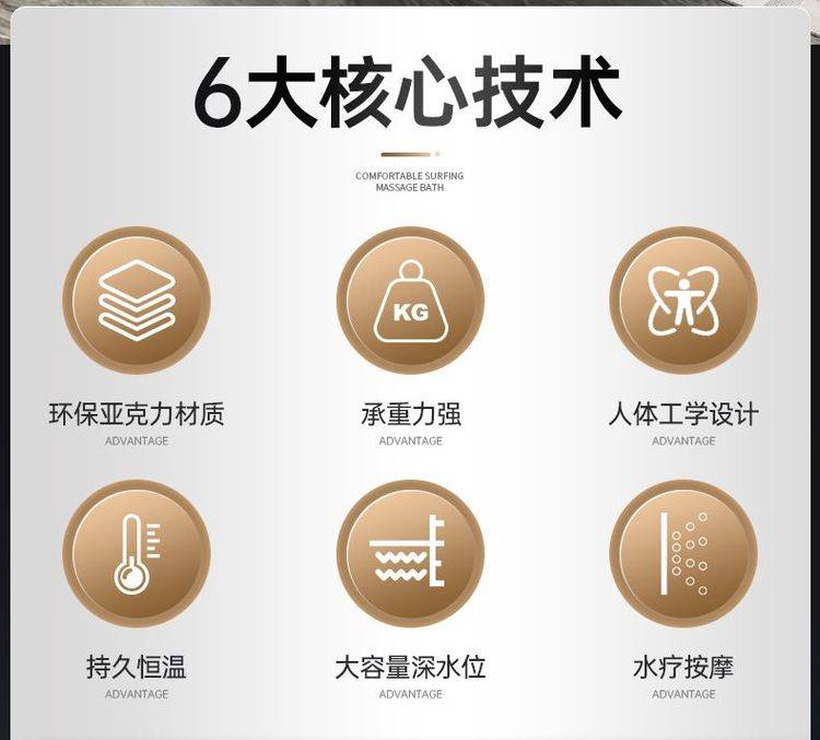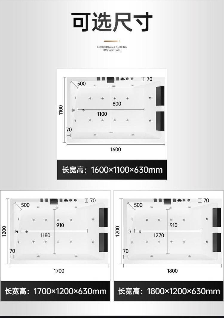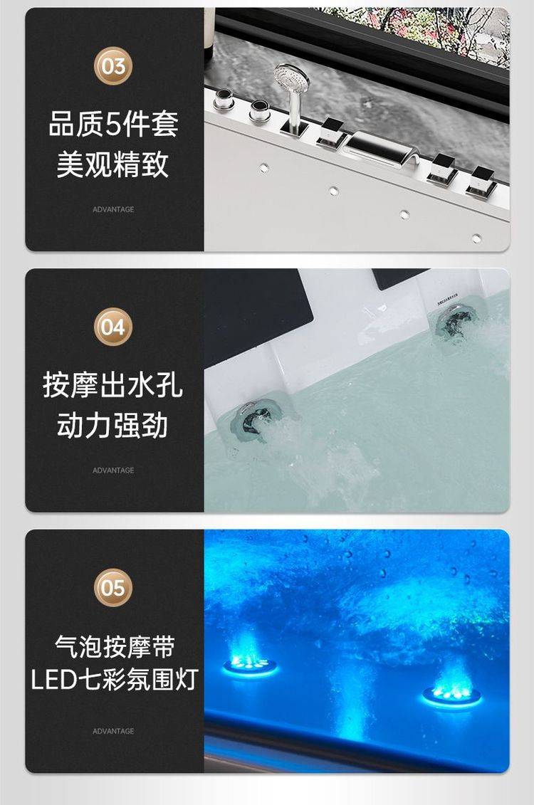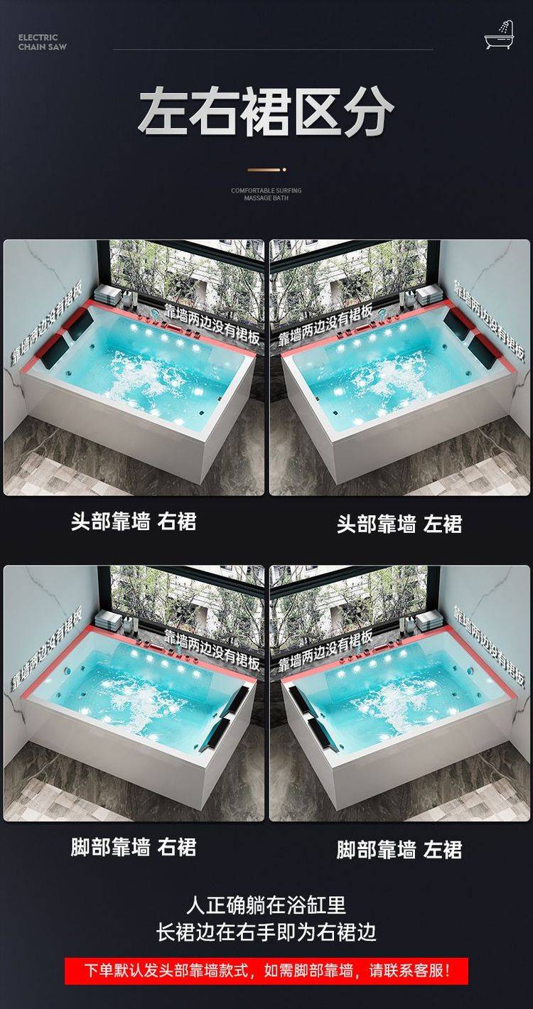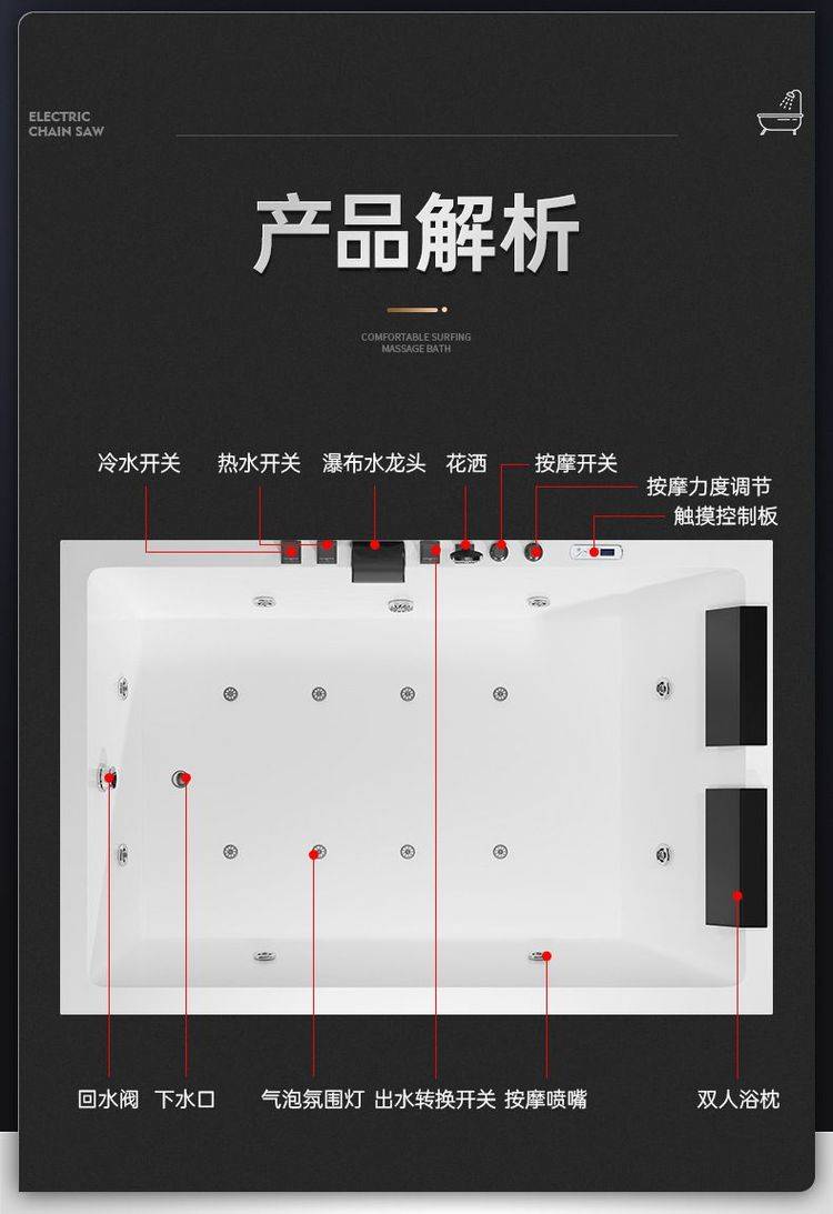 奎因情侣双人水幕大瀑布恒温加热按摩浴缸 舒适冲浪深泡空间家用