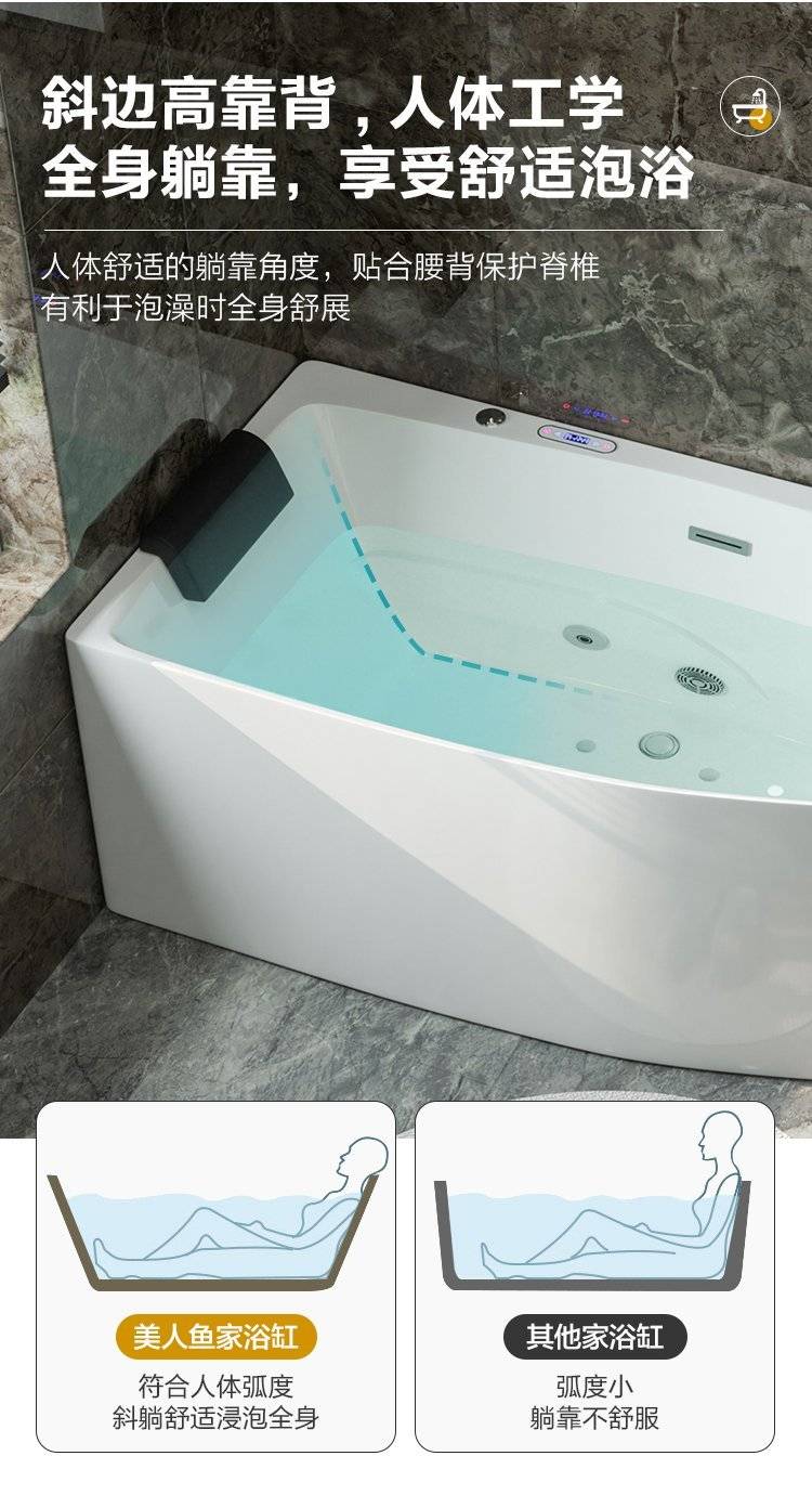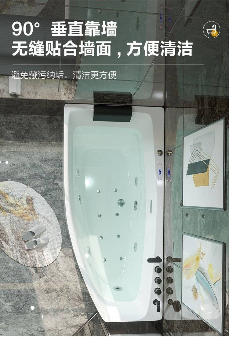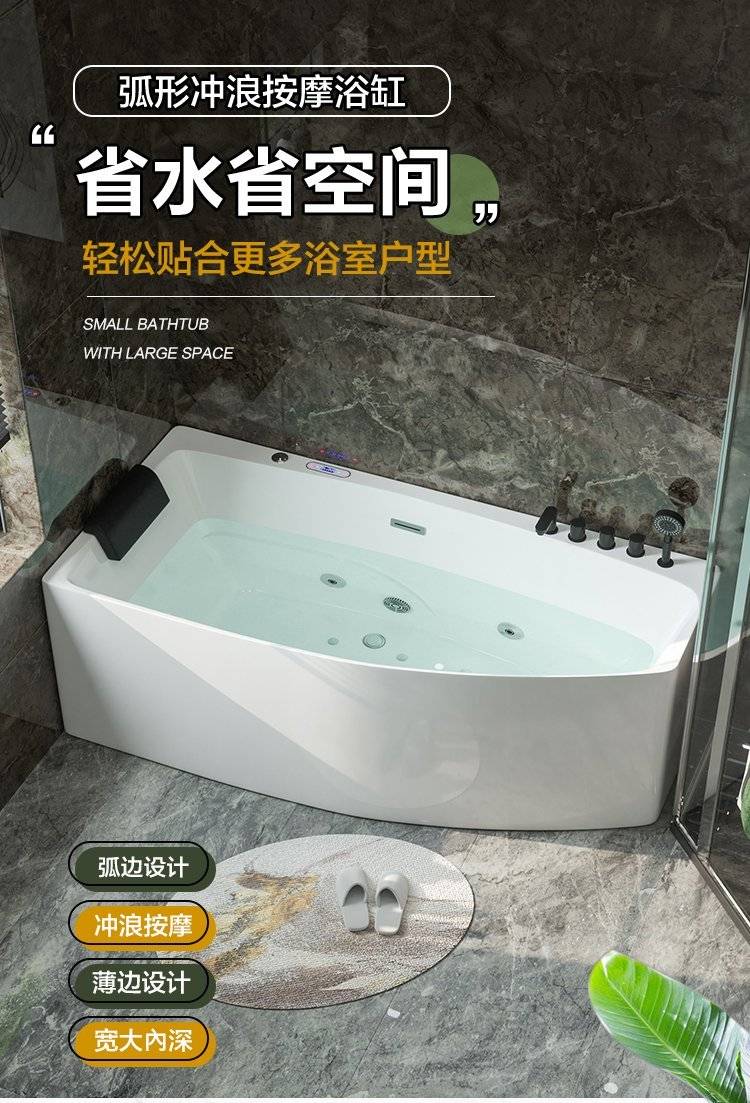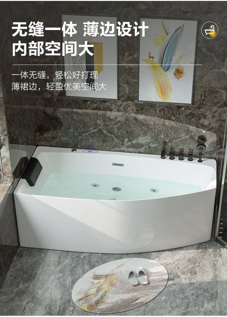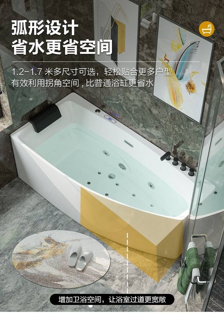 日式亚克力家用小户型冲浪按摩恒温轻奢转角双人浴缸异形浴盆1.7m