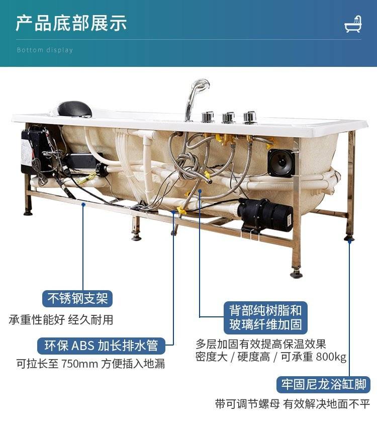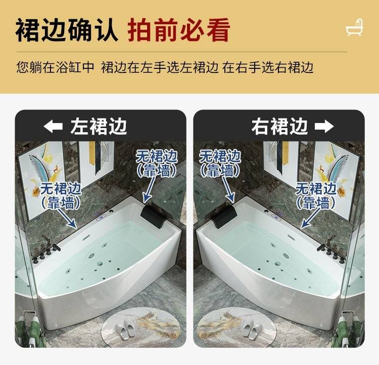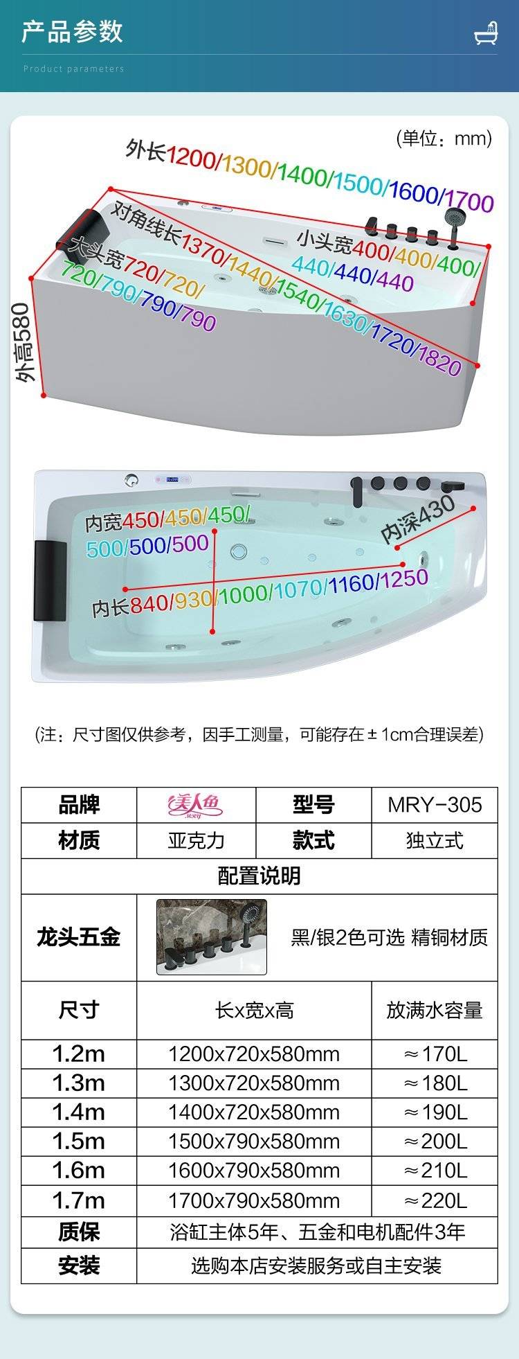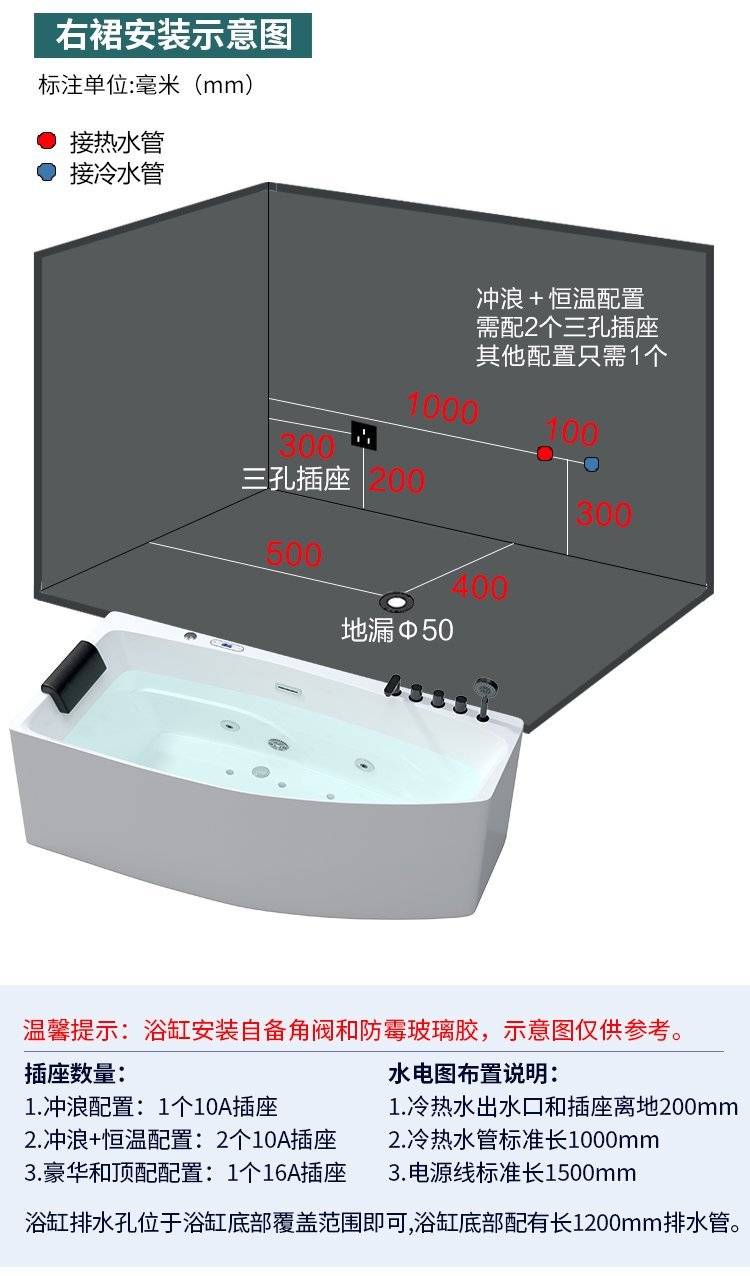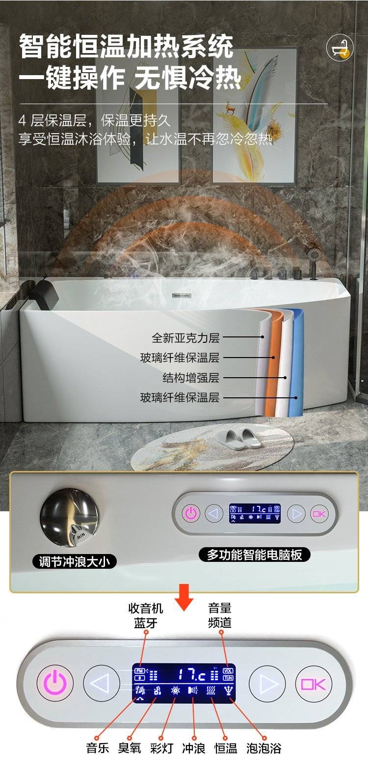 日式亚克力家用小户型冲浪按摩恒温轻奢转角双人浴缸异形浴盆1.7m