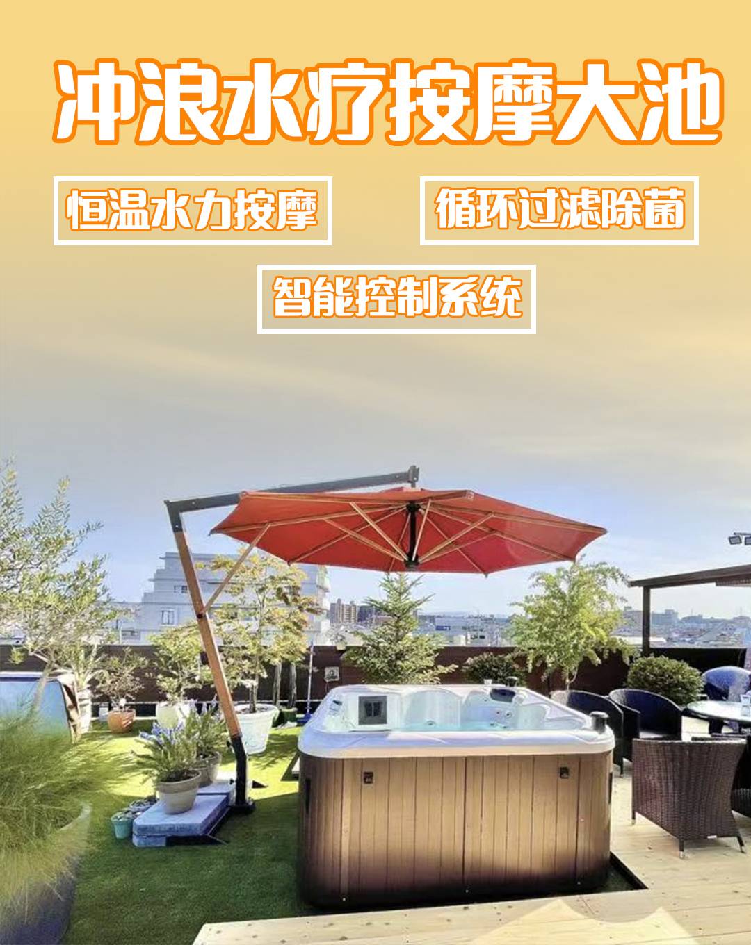 室内进口亚克力小容量按摩浴缸 户内户外两用 双人冲浪 家用一体缸