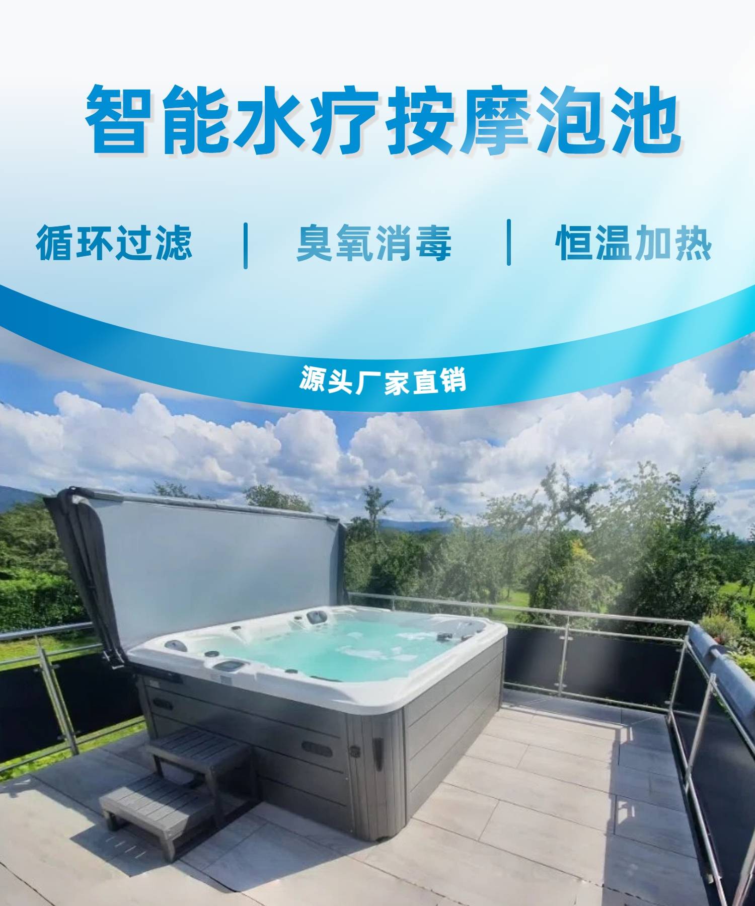 户外按摩浴缸多人恒温冲浪SPA水疗别墅花园小型双人温泉按摩池