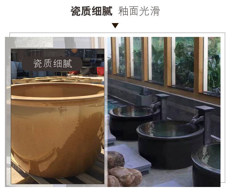 陶瓷圆形泡澡缸温泉浴场洗浴大缸酒店浴缸户外双人浴缸泡缸工厂家