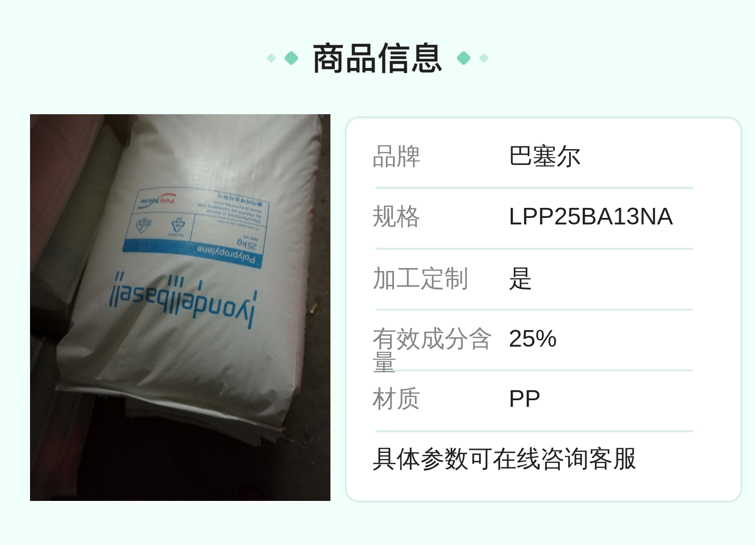巴塞尔品牌超强刚性聚丙烯LPP25BA13NA碳酸钙填料汽车用再生塑料