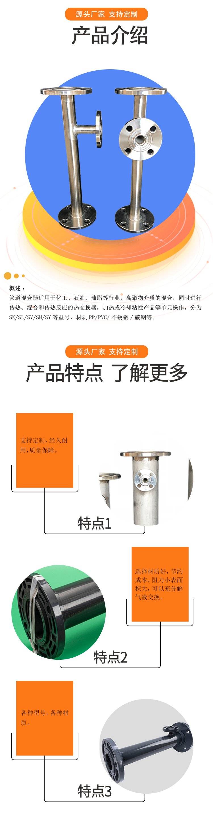 管道混合器 2205材质化工加药混合设备 耐腐蚀 SK型混合单元 博慧环保