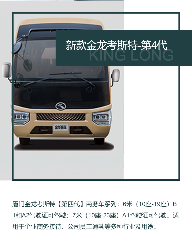 19座中型客车 金龙考斯特第4代 全幅式前围设计 凯运汽车