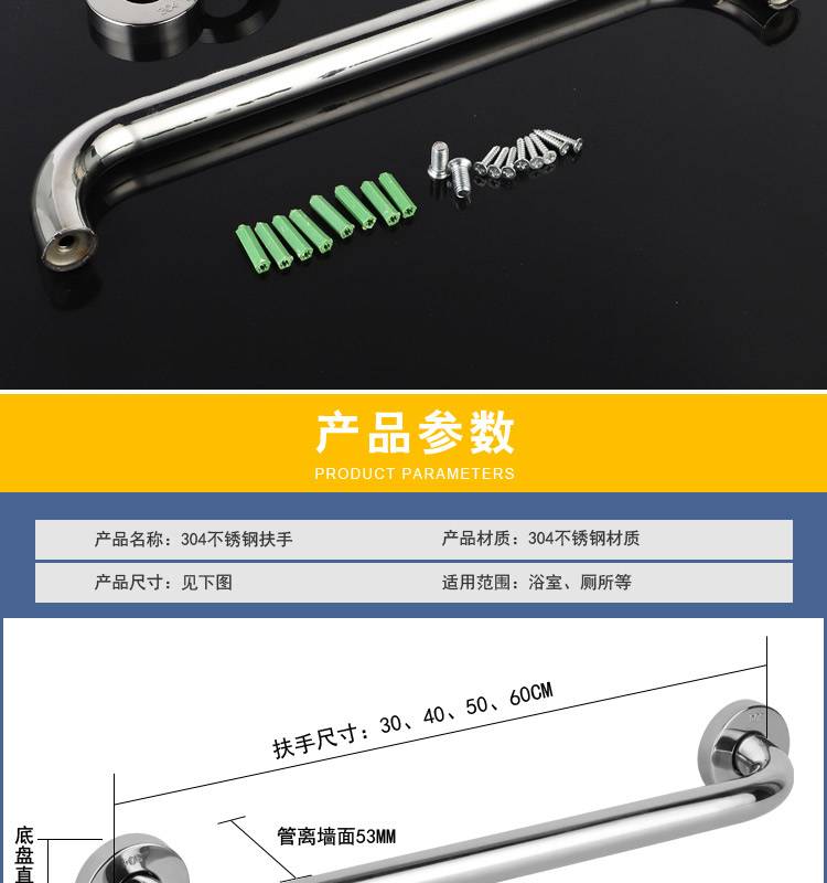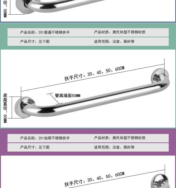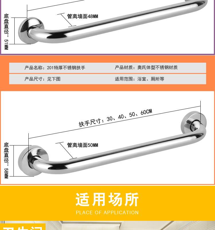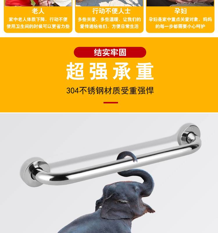 加厚304不锈钢浴室浴缸防滑扶手卫生间老人无障碍安全拉手加长粗