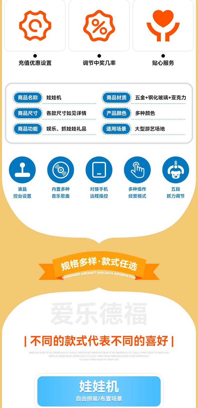 娃娃机出租 暖场电玩游戏机 商用夹公仔 无人化管理 爱乐德福