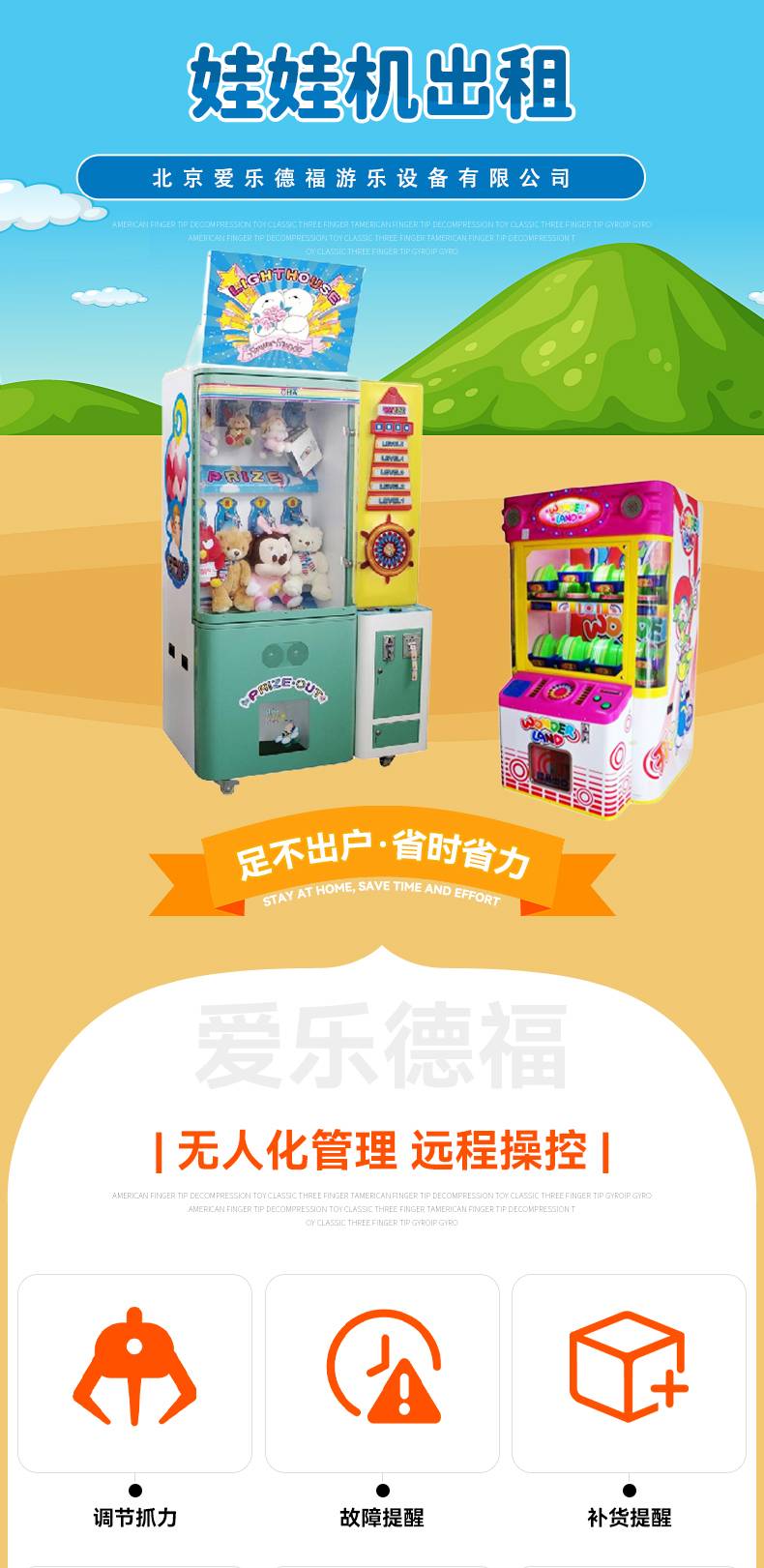 娃娃机出租 暖场电玩游戏机 商用夹公仔 无人化管理 爱乐德福