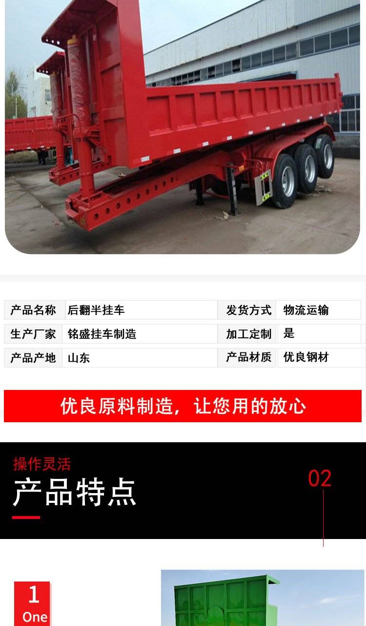 20英尺港口后翻半挂车 小蜜蜂直顶自卸车 轻量化设计