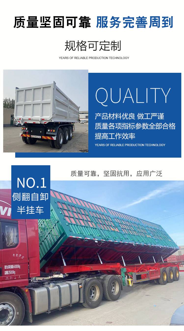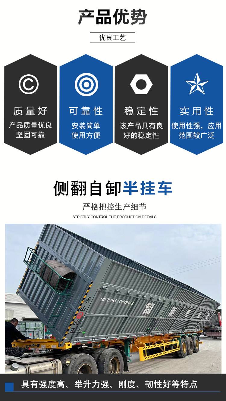 9米直顶半挂车 轻量化翻斗自卸车 后翻半挂运输车