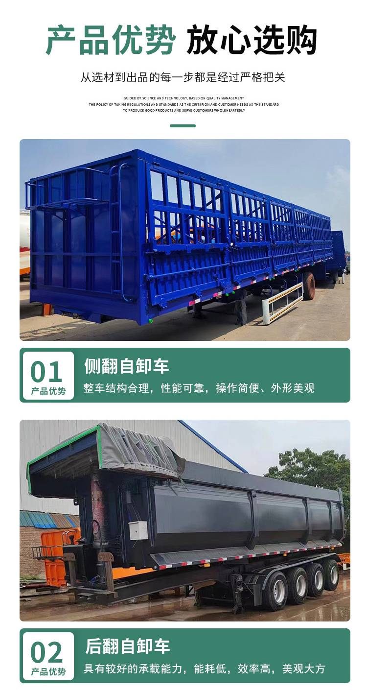 小蜜蜂后翻自卸车 大鹅颈直翻半挂车 短小灵活