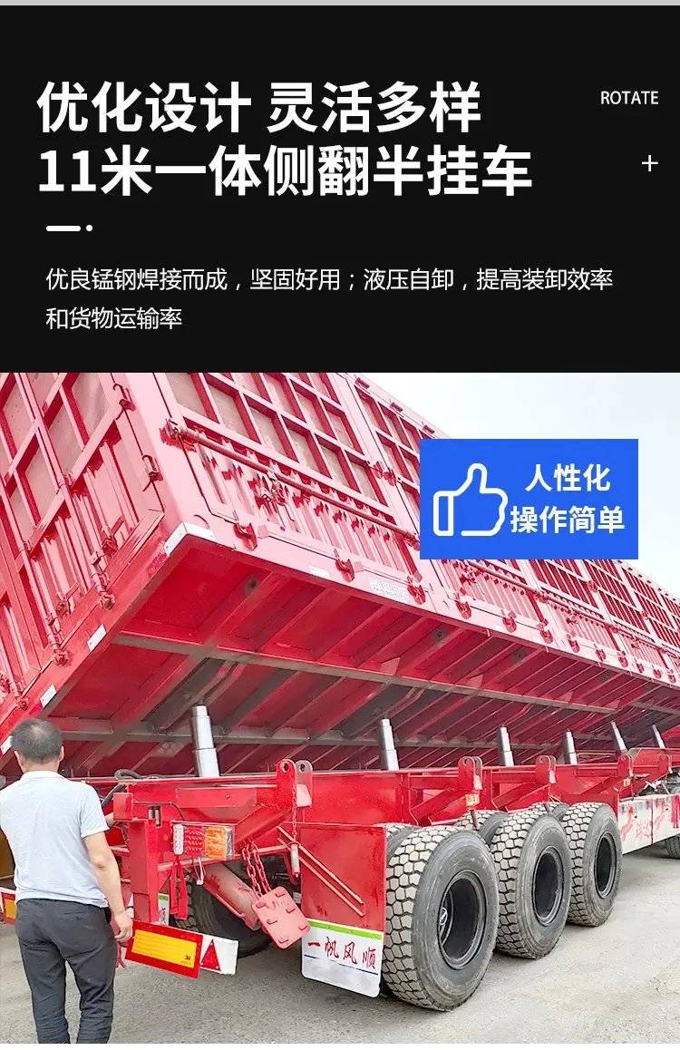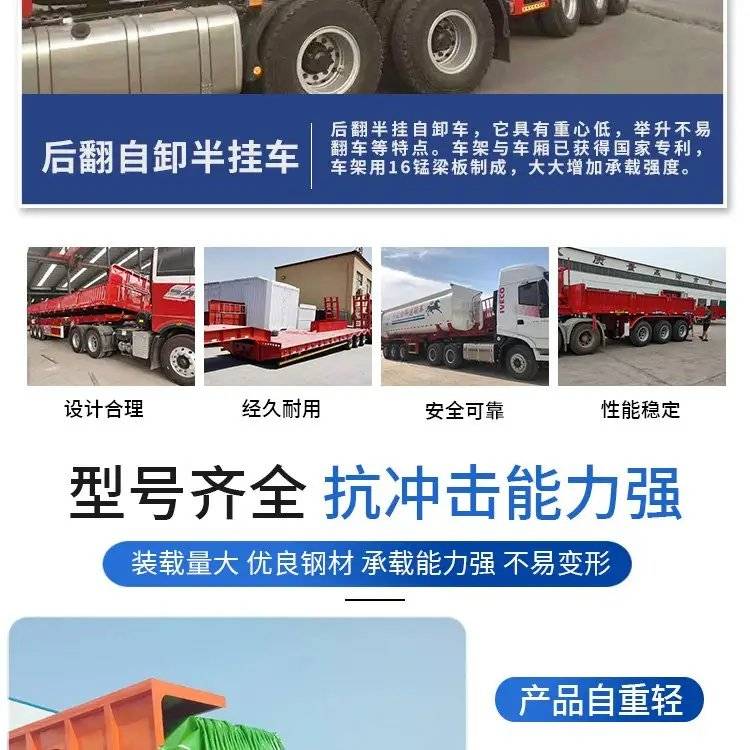 出口9米10米后翻自卸半挂车 轻量化一体后 翻自卸车