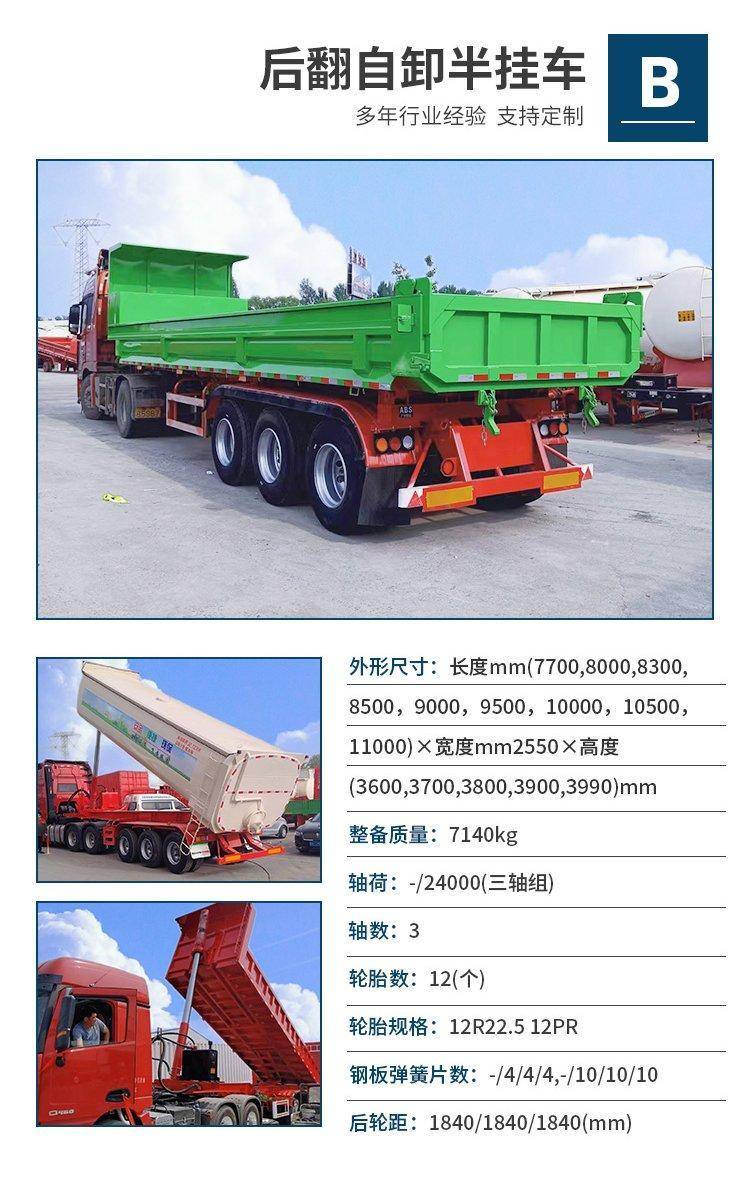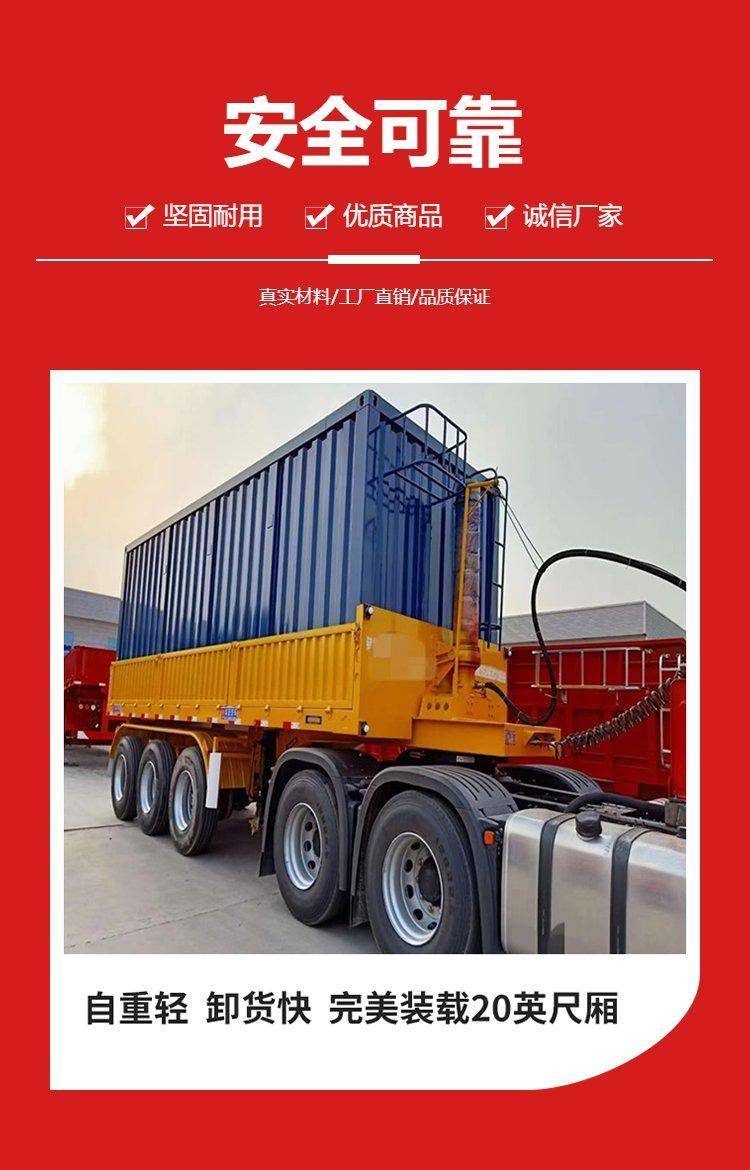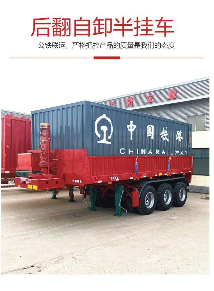 高厢后翻自卸车 13米集装箱直翻半挂车 散装粮食直顶立翻拖挂车